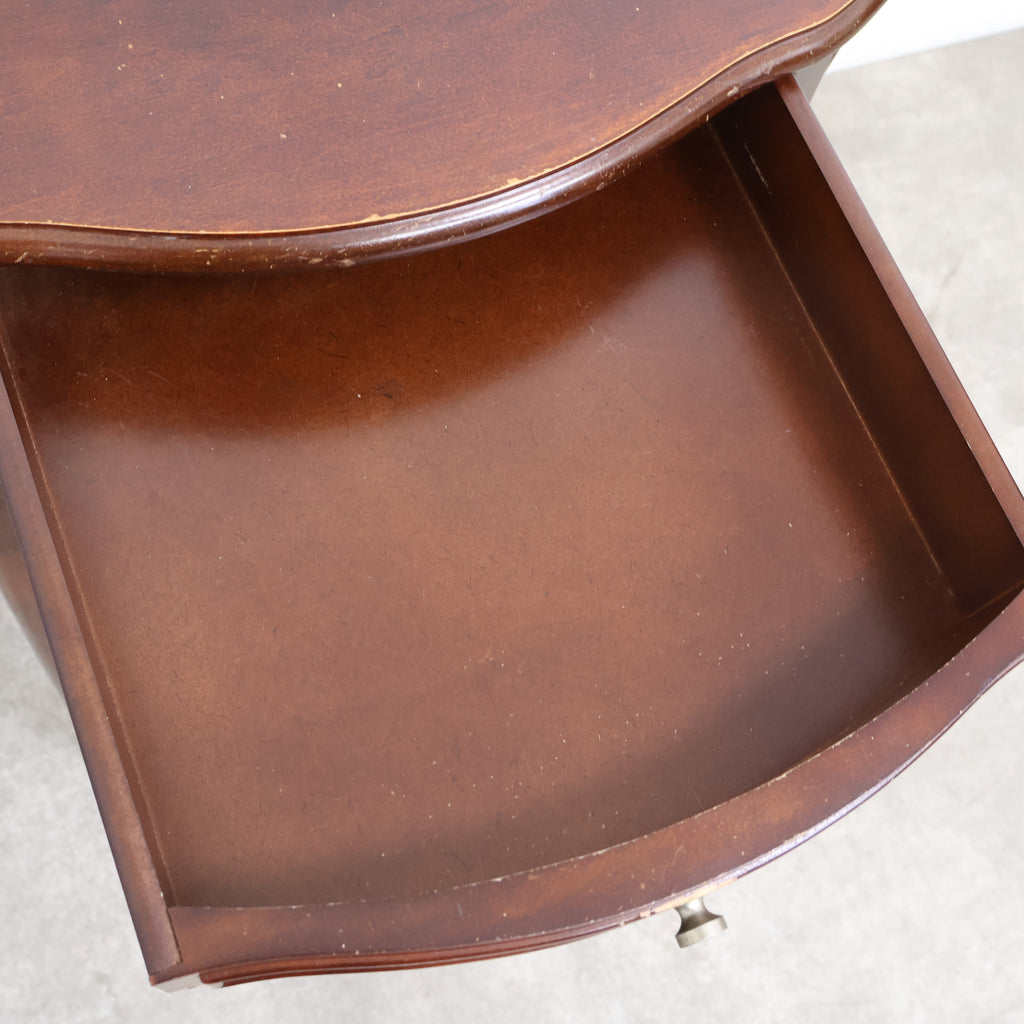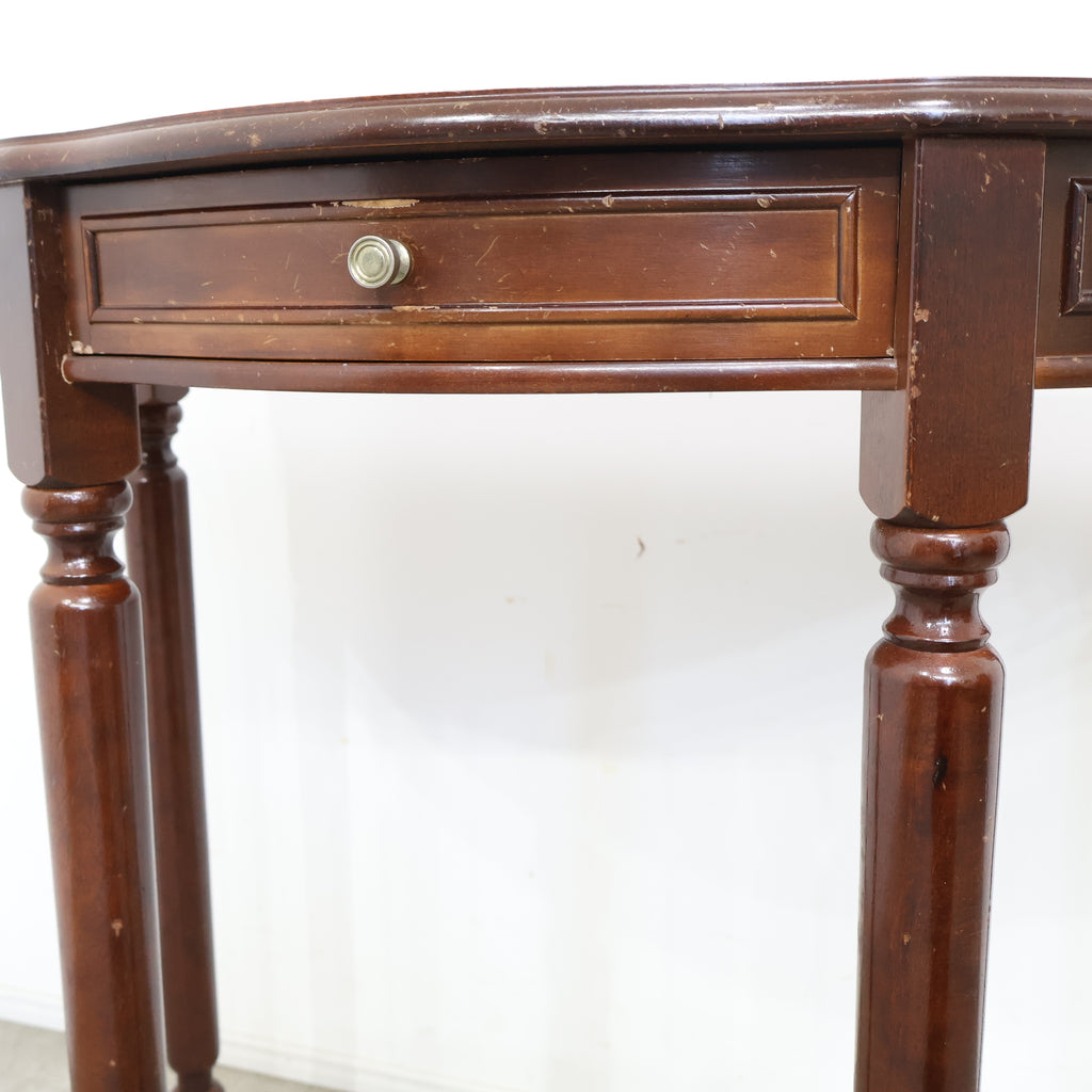 やわらかな曲線を描く天板が印象的な、アンティーク調のコンソールデスクです。