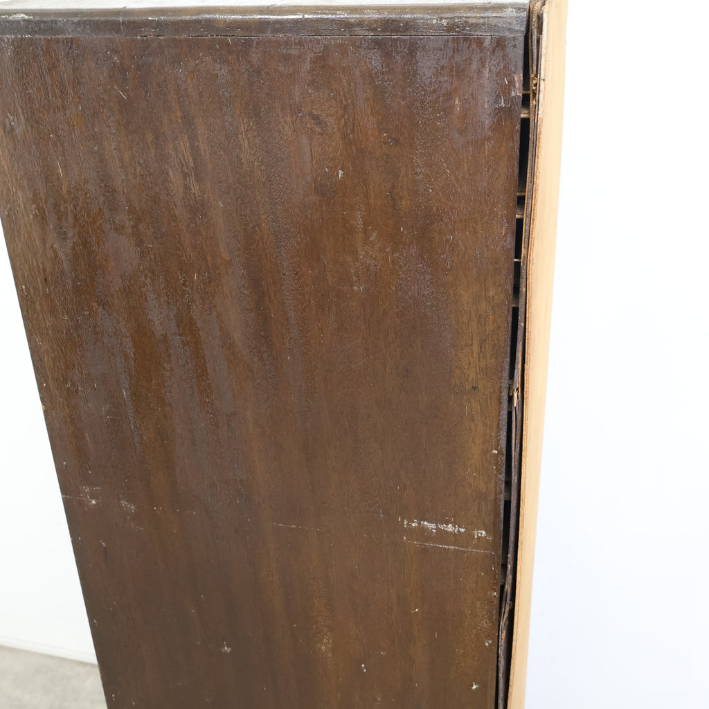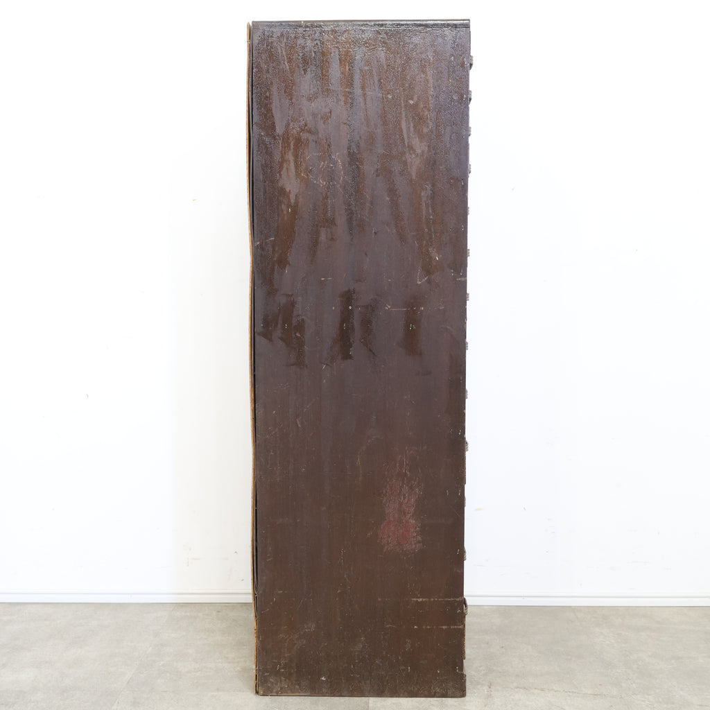 古家具のため全体的にキズや細かい汚れ、背板の浮き(隙間)や仕切りパーツの欠品がございます。