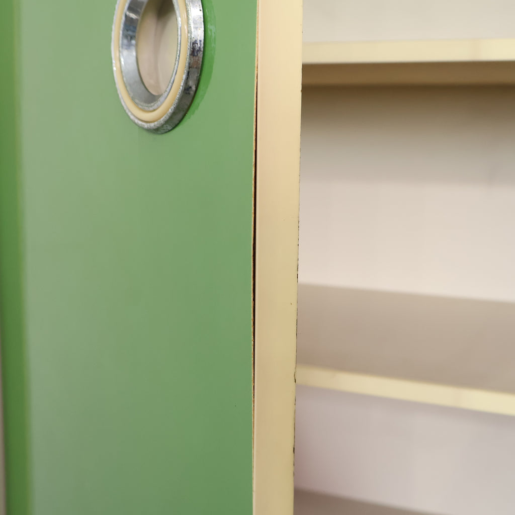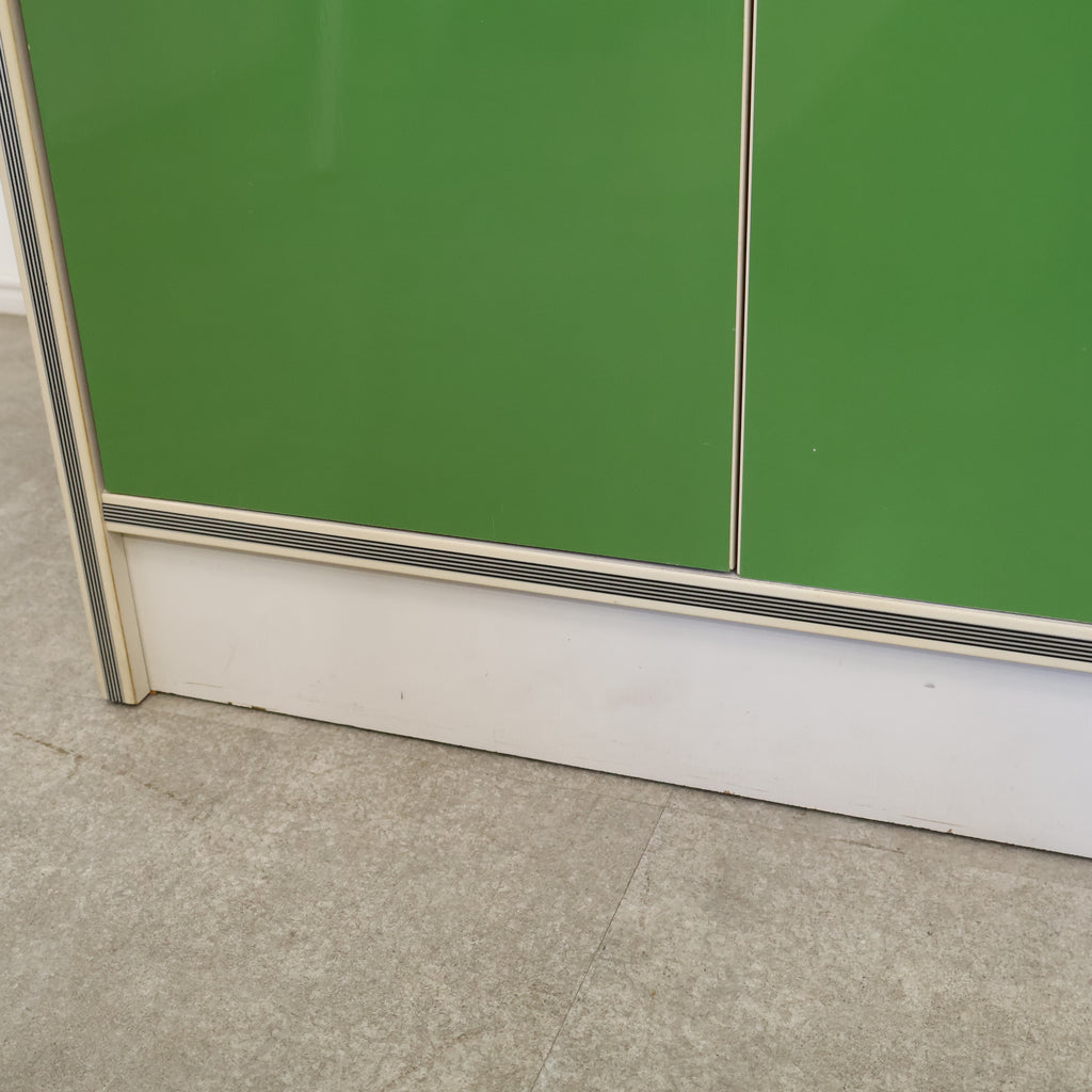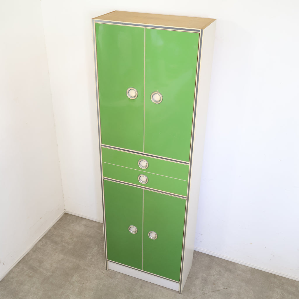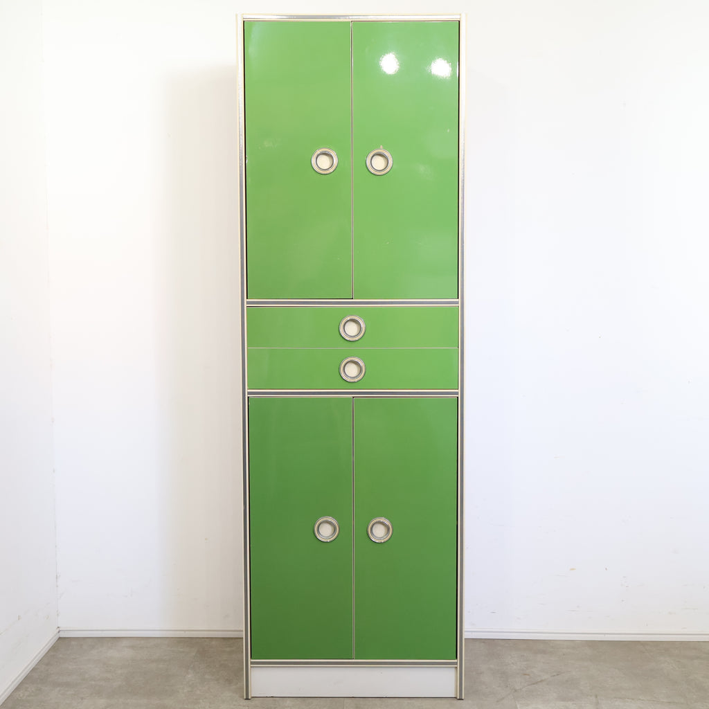 鮮やかなグリーンカラーが目を引く、レトロな収納キャビネットです。