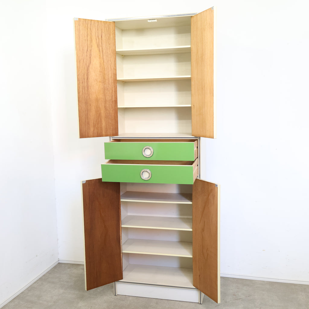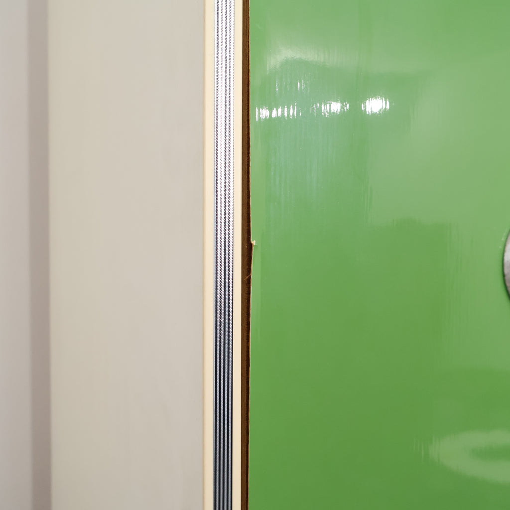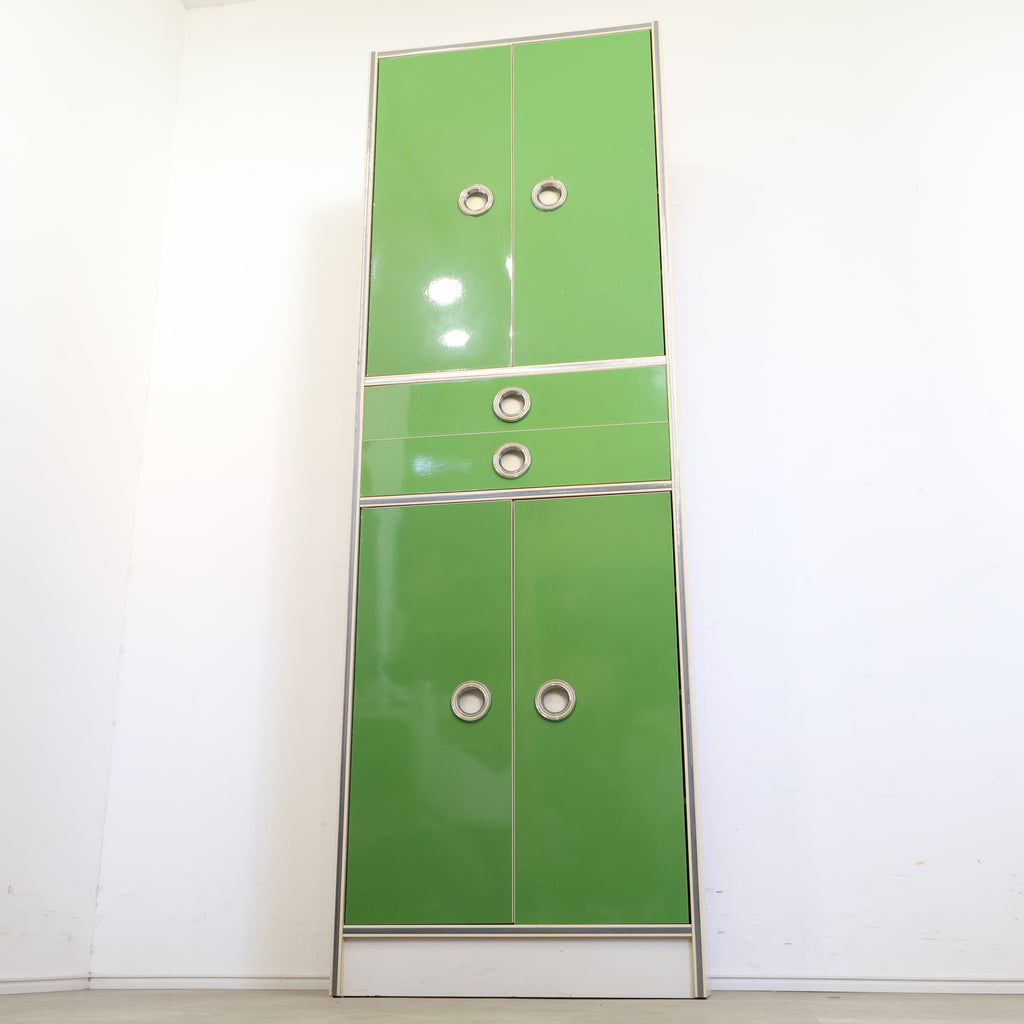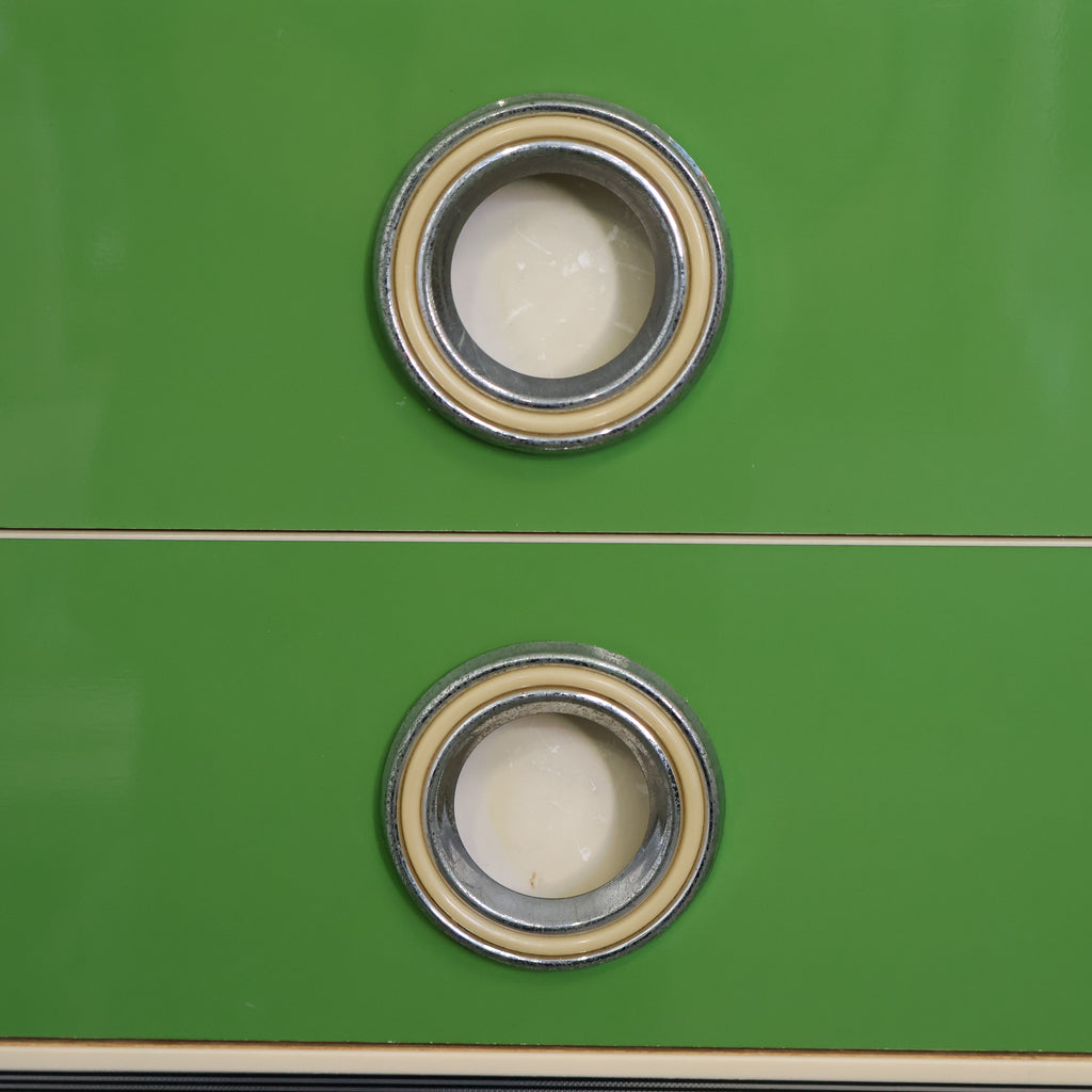 鮮やかなグリーンカラーが目を引く、レトロな収納キャビネットです。