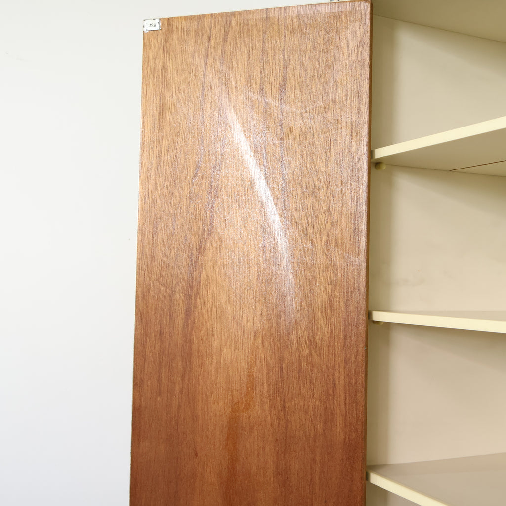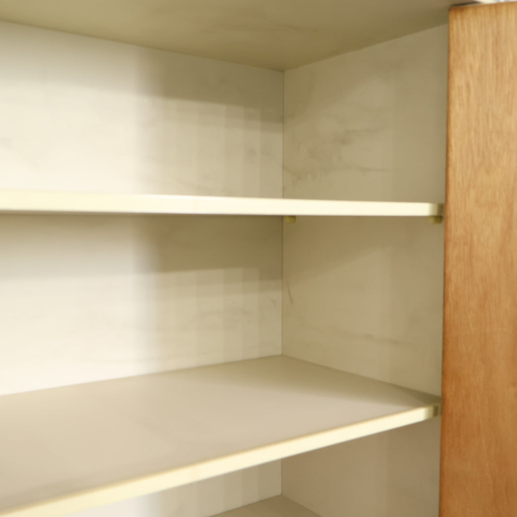 艶のある扉面と丸型の取っ手が印象的で、昭和レトロならではのポップで親しみやすいデザインが魅力の一台です。空間に置くだけでアクセントになり、インテリアの主役として活躍してくれます。 上下に分かれた扉収納と引き出しを備え、見た目以上にしっかりとした収納力。食器や日用品、小物類など用途に応じて整理しやすく、リビングやキッチン、店舗什器としても使いやすい構造です。