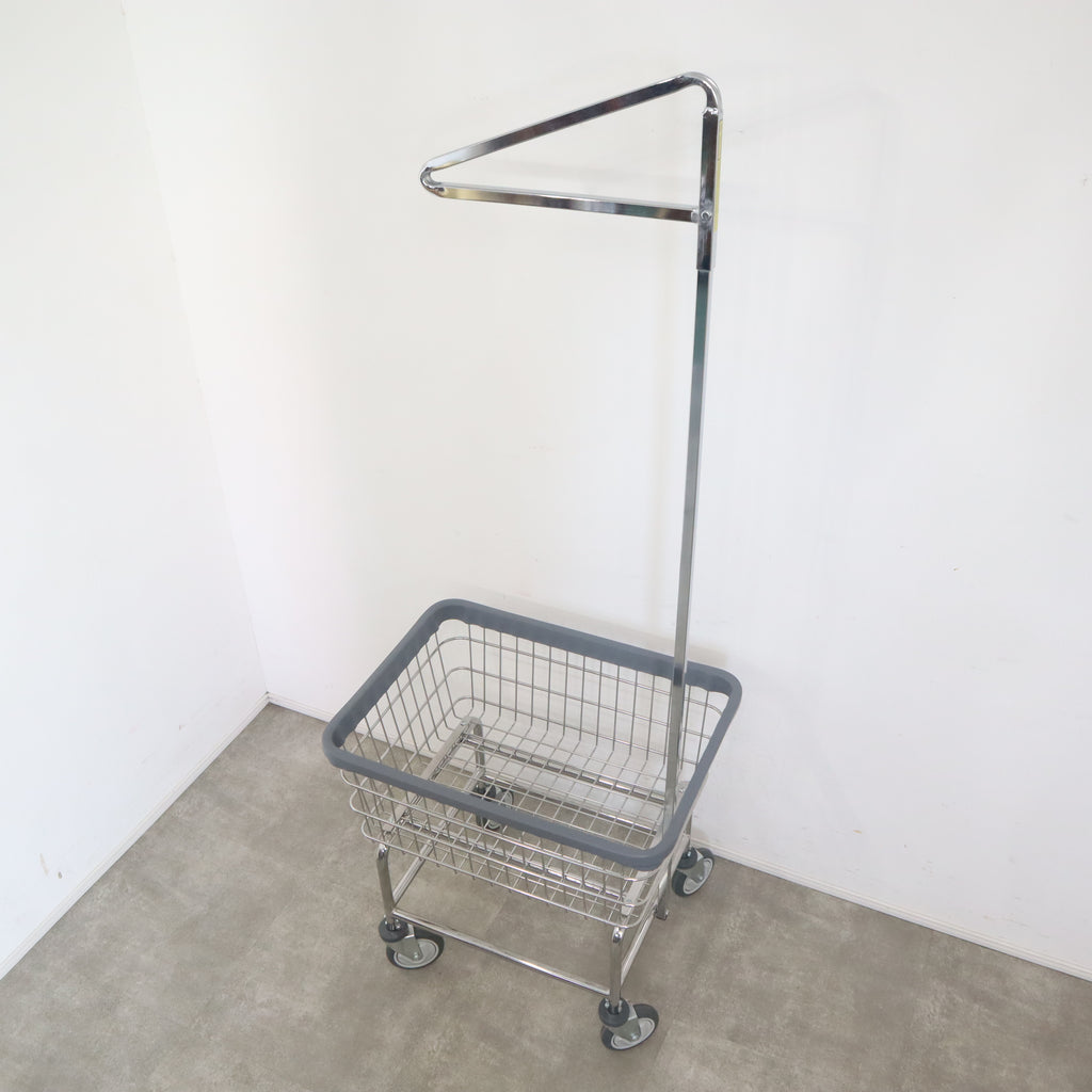 アメリカのR&Bワイヤープロダクツのランドリーカートです。アメリカのコインランドリーやスタジアムのロッカー等で広く使用されているランドリーカートです。トップの三角のハンガーラックが付いています。家に着いて服を着替える時ソファや椅子にかけてしまいがちな服たちを、ここに収めることが出来ます。