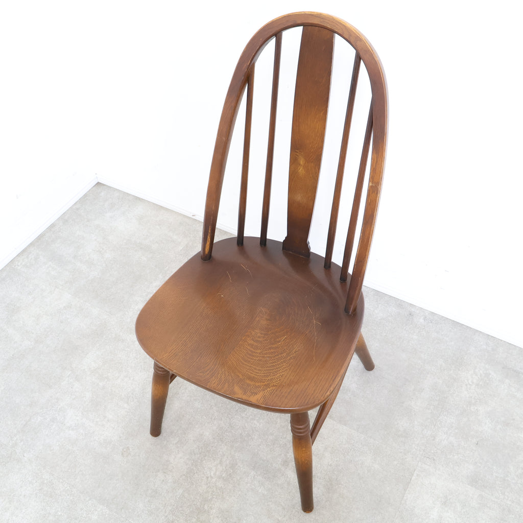 飛騨産業キツツキマークのウィンザーチェアです。背もたれは1本の木を曲げて成形されるボウバックチェアで、飛騨産業の技術力はさすがです。