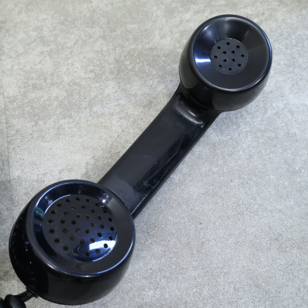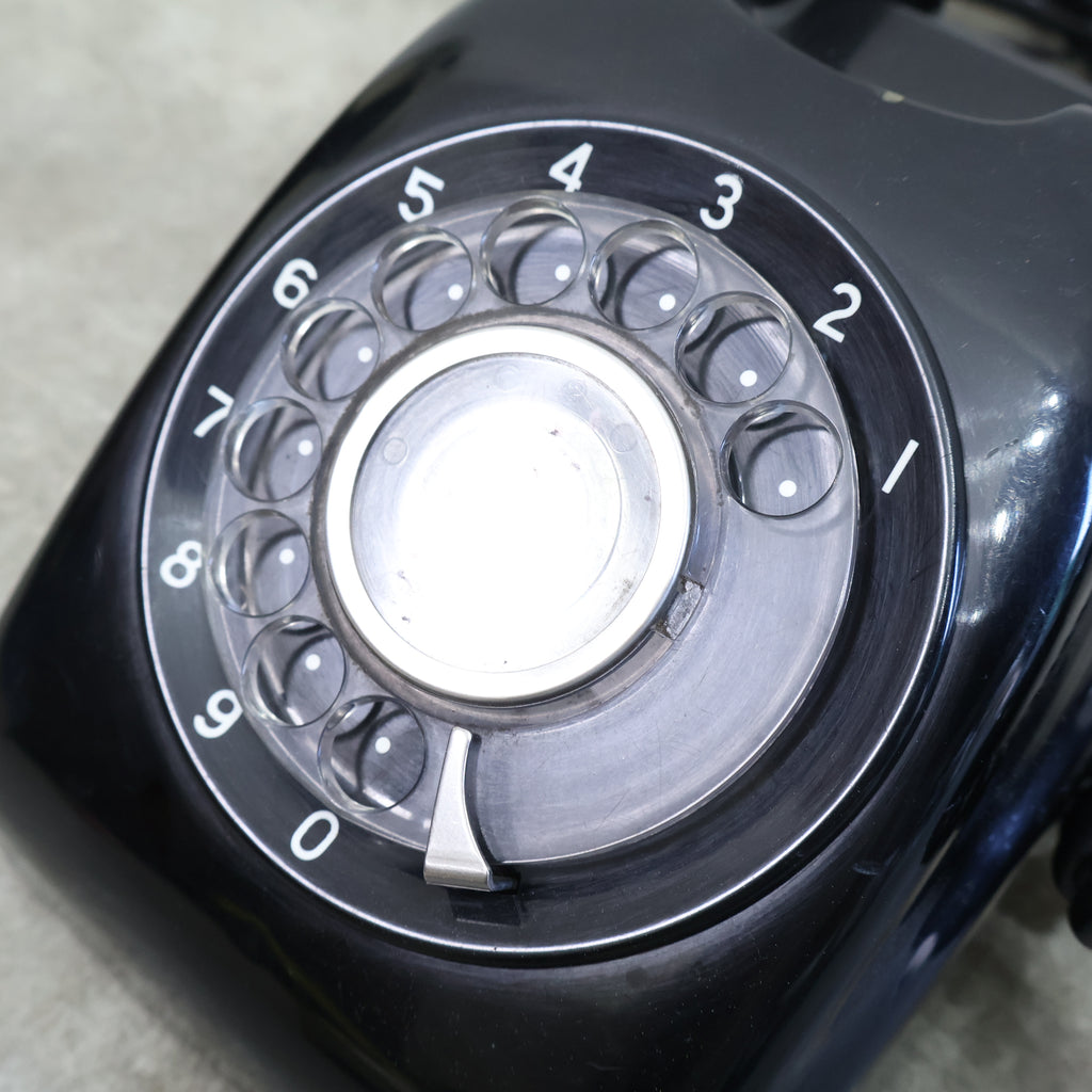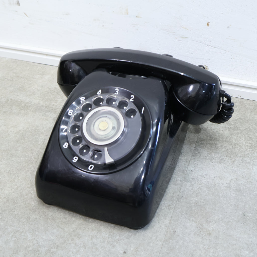 昔懐かしい黒電話です。昭和の時代を代表する定番のようなシンボルですね。黒くて艶のある本体は重厚なイメージがあり、回すダイヤルや独特な音色が懐かしさを呼び起こしますね。