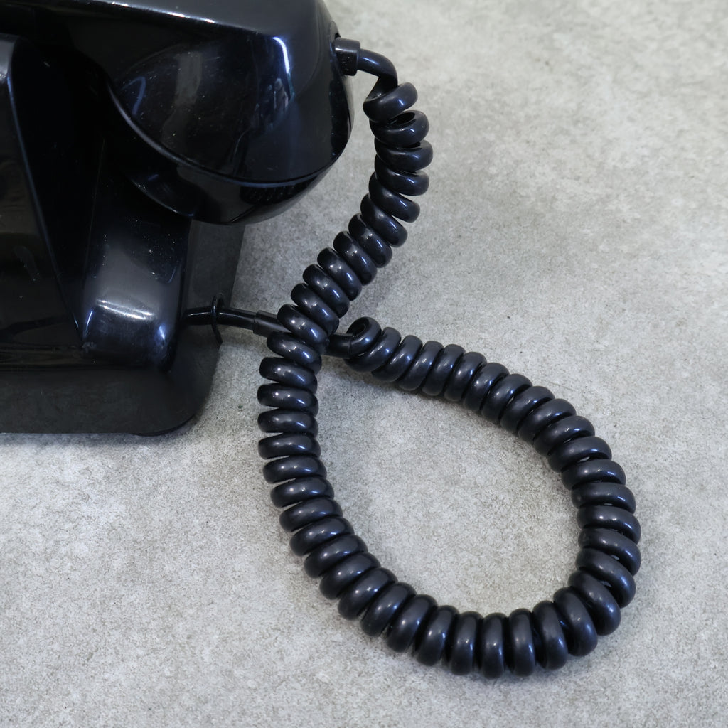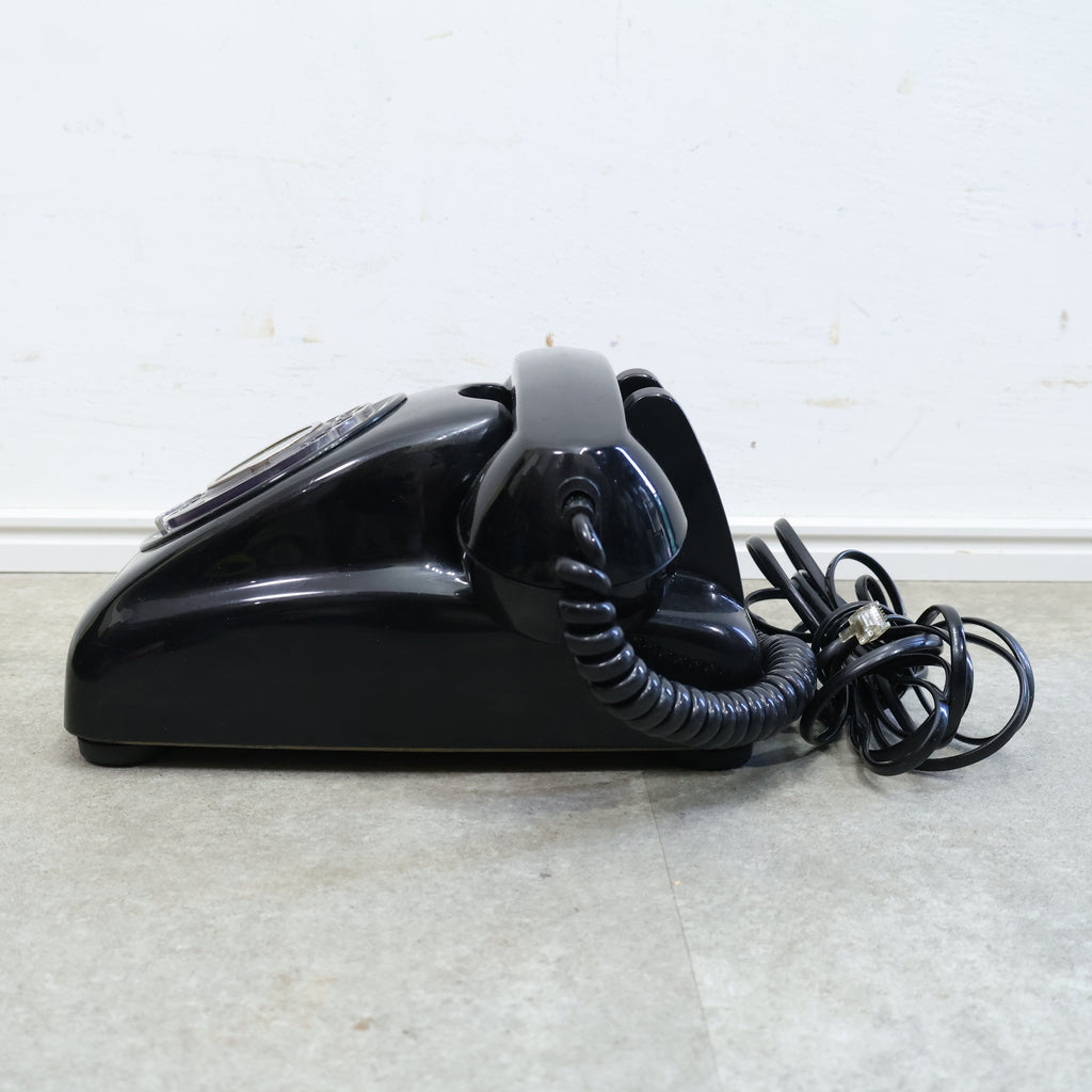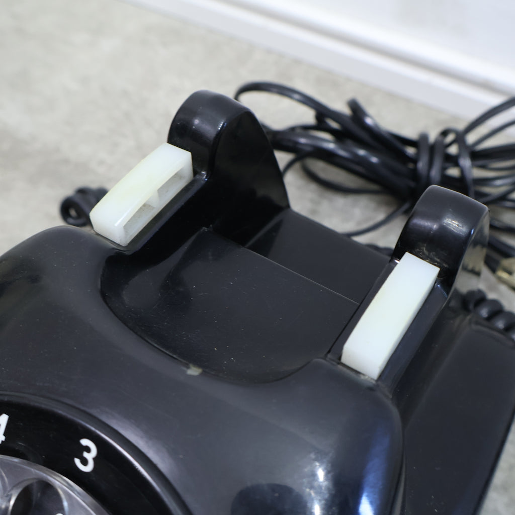昔懐かしい黒電話です。昭和の時代を代表する定番のようなシンボルですね。黒くて艶のある本体は重厚なイメージがあり、回すダイヤルや独特な音色が懐かしさを呼び起こしますね。