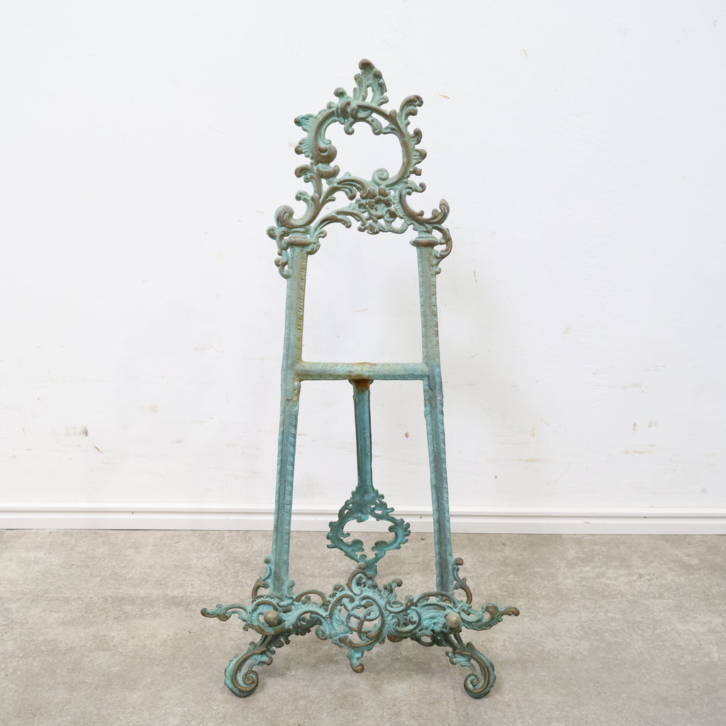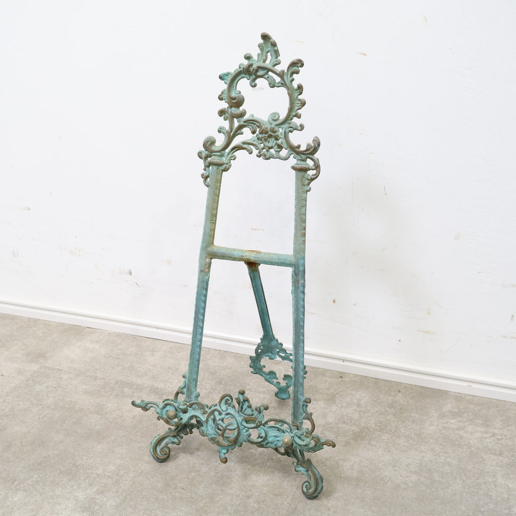 アイアン製のイーゼルです。木の蔓のようなデザインで、欧風レトロな雰囲気が独特でオシャレです。所々に見られるアイアンの褪せた風合いも魅力的です。
