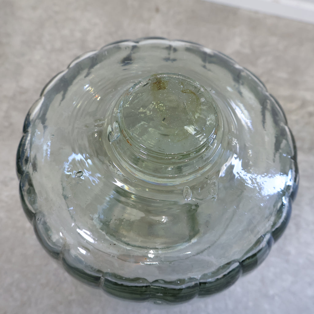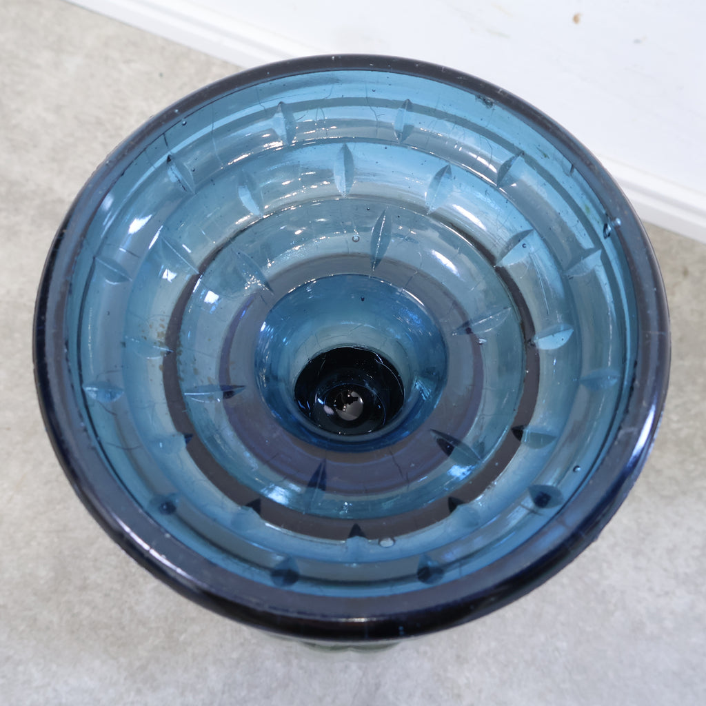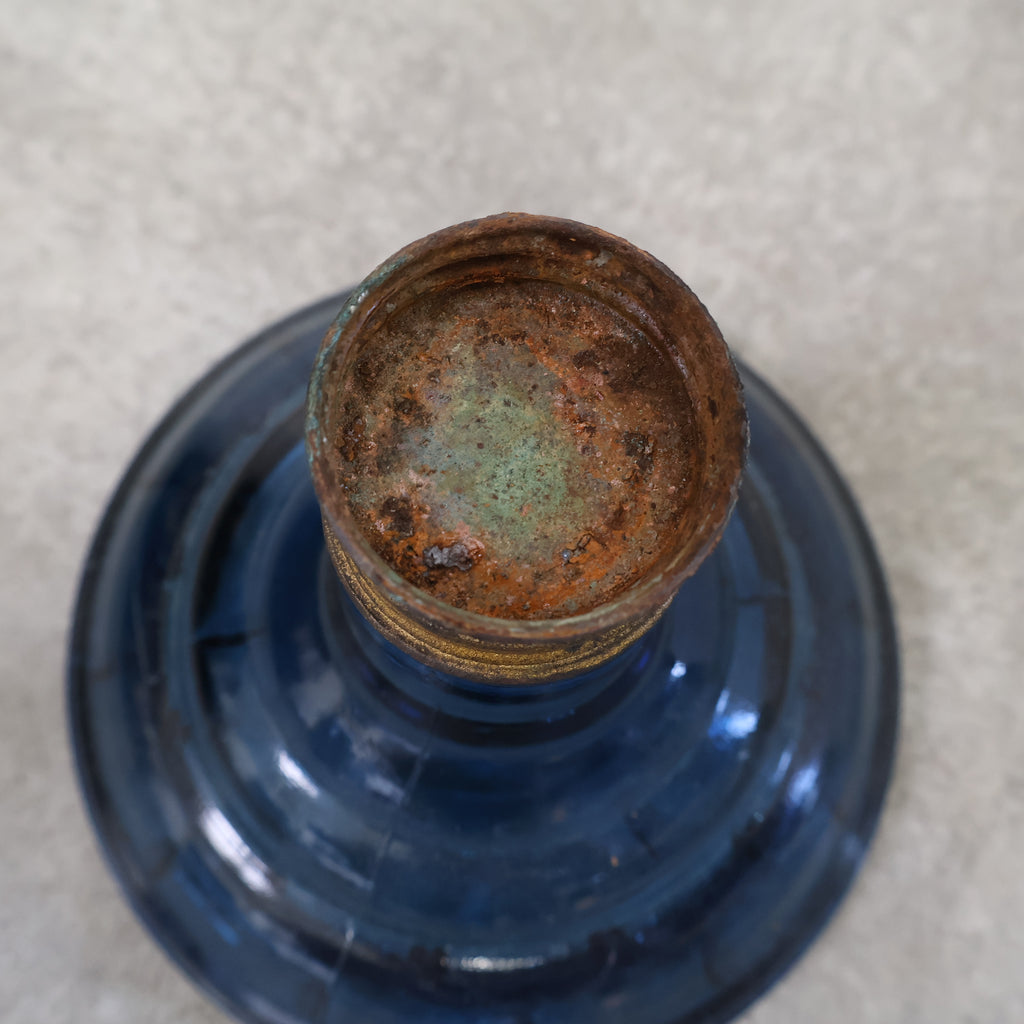 ガラス製のオイルランプです。藍色の台がシックでレトロな雰囲気です。灯りをつければ優しい光をゆらゆらと雰囲気良く放ち、疲れを癒してくれそうですね。
