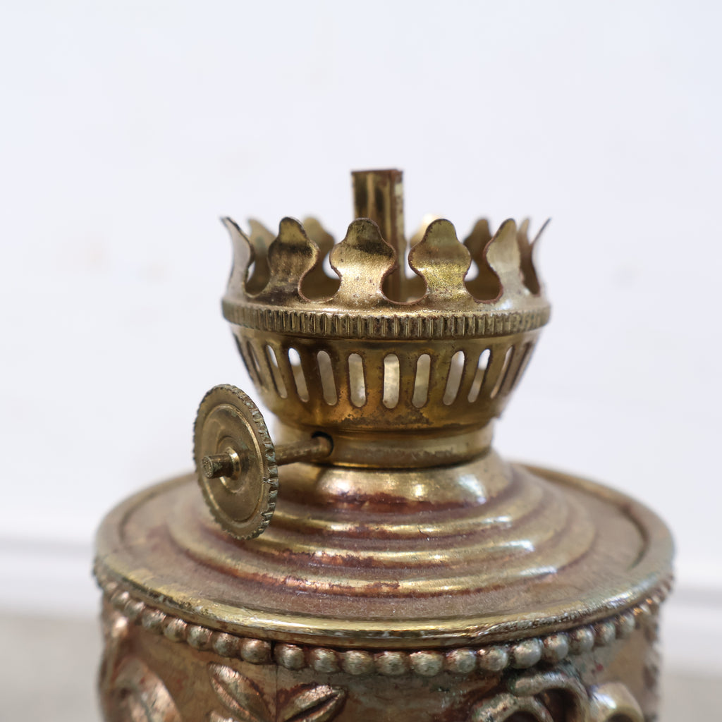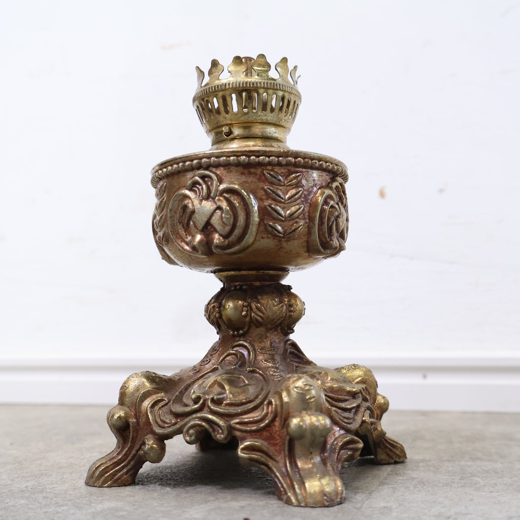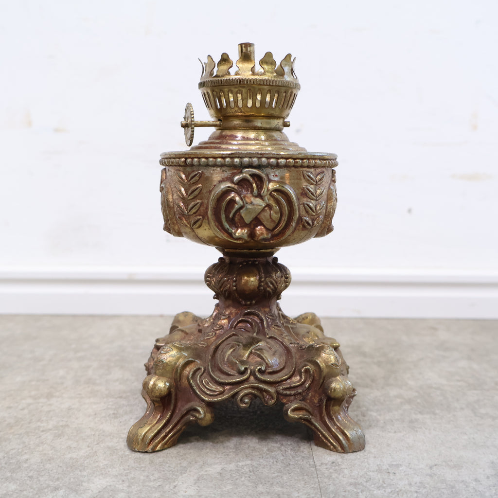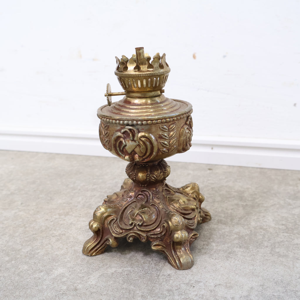 金色のオイルランプ台です。豪華で見るからに華やかな装飾はアンティーク調で素敵ですね。
