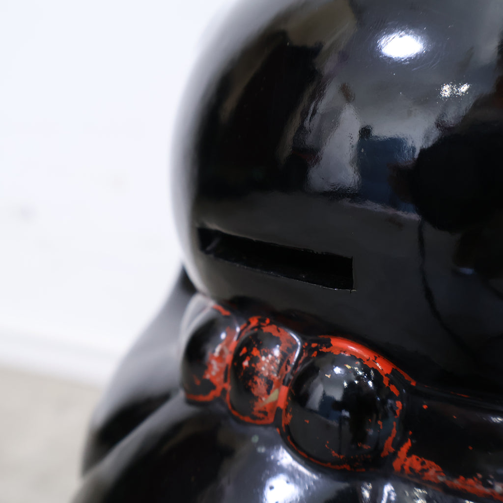 招き猫の貯金箱です。左手を挙げている招き猫は、人を招く意味を持ちます。