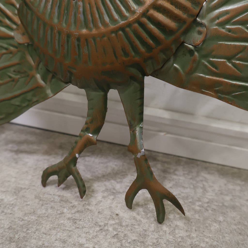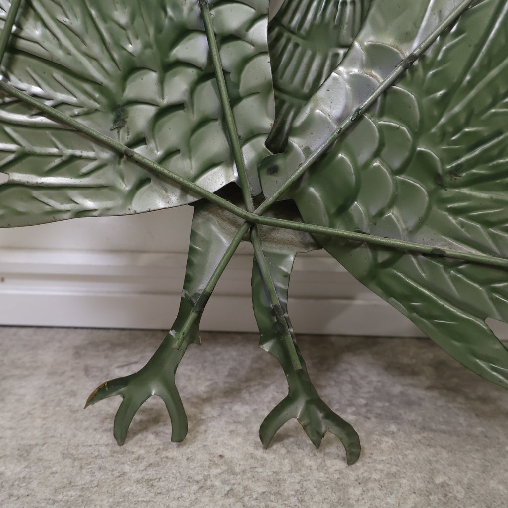孔雀(クジャク)のオブジェです。高々と羽を広げた雄の孔雀で、存在感のある立派な立ち姿が凛々しいですね。孔雀は幸運や繁栄を象徴するとされ、特に広げた目には魔除けの効果があると言われています。