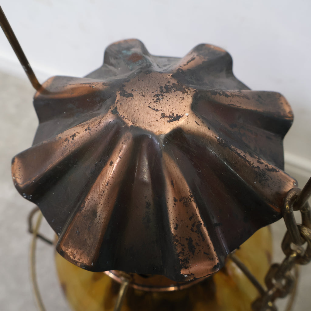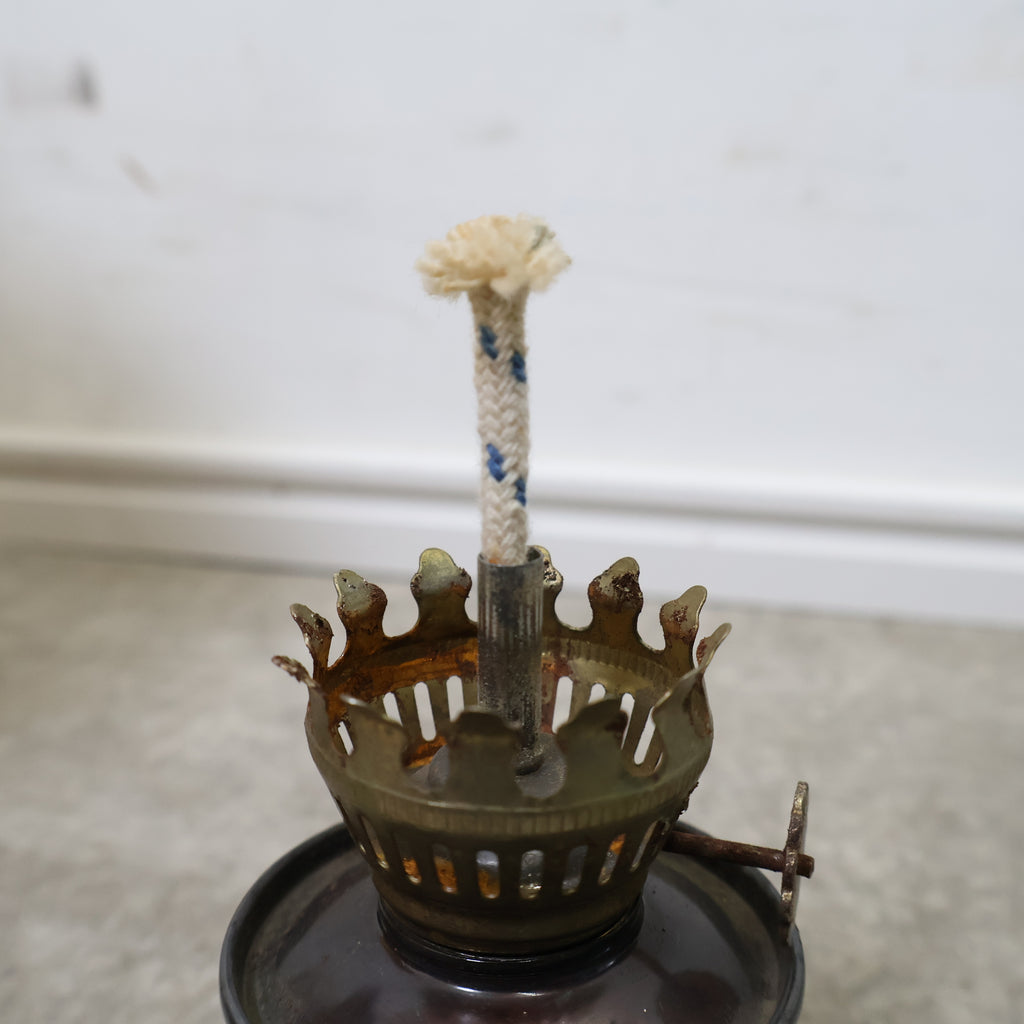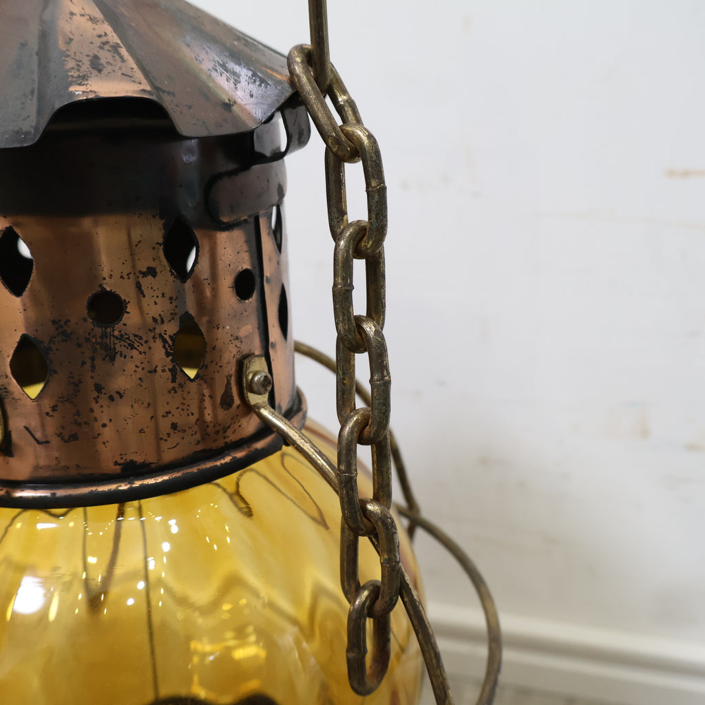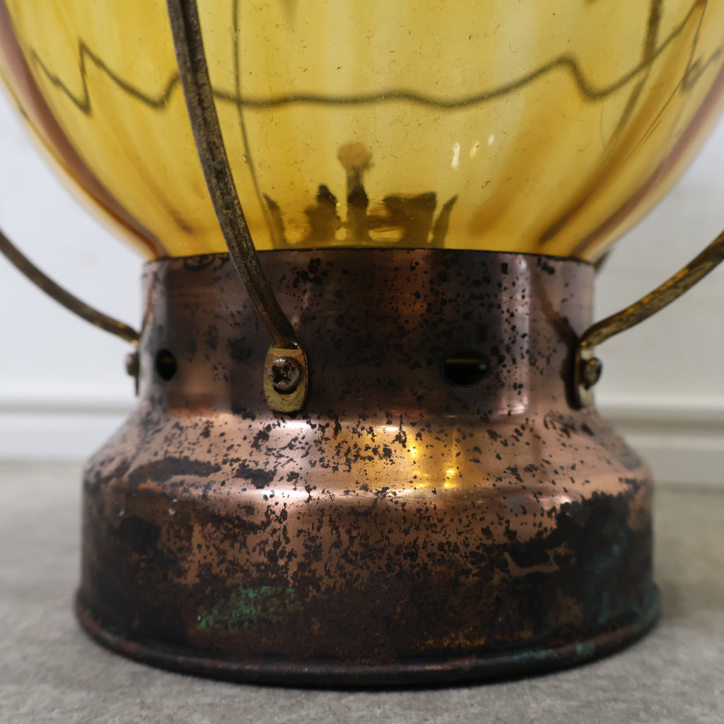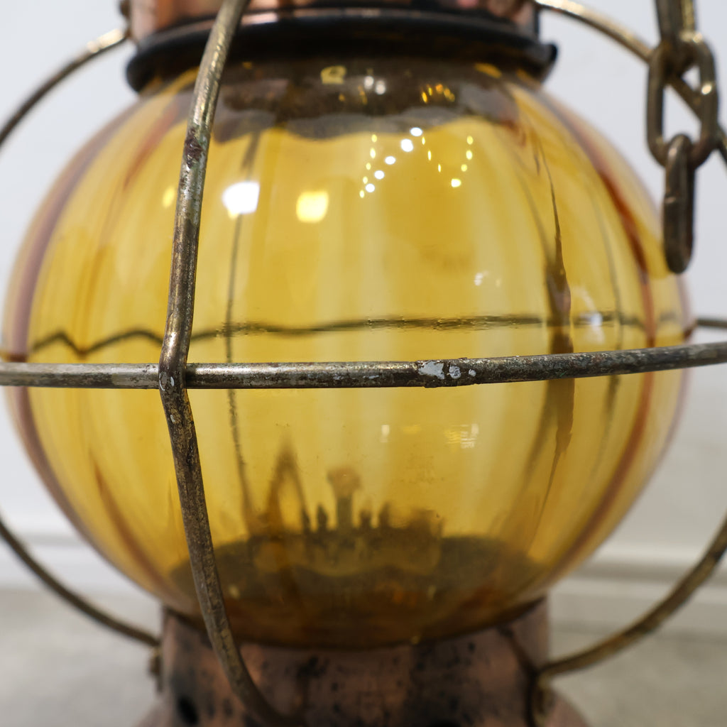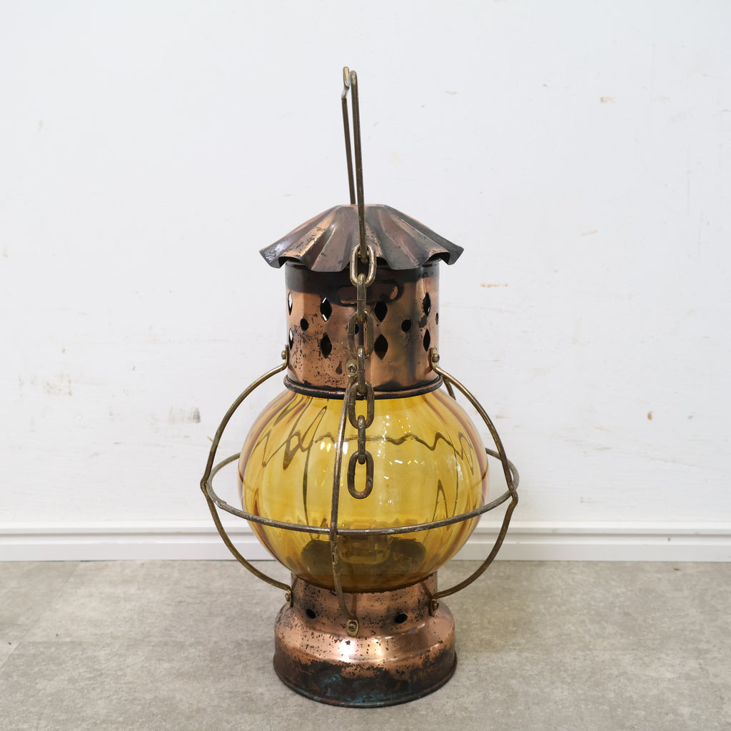 イエローガラスがオシャレなオイルランタンです。アンティーク調な質感と全体の雰囲気がレトロでかわいらしく、年月が経っていてもこの独特な世界観はカッコよくて際立ちますね。
