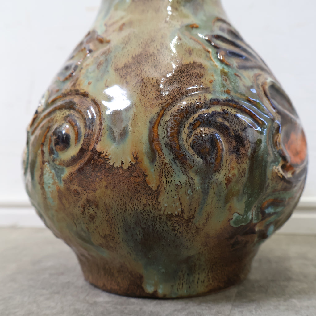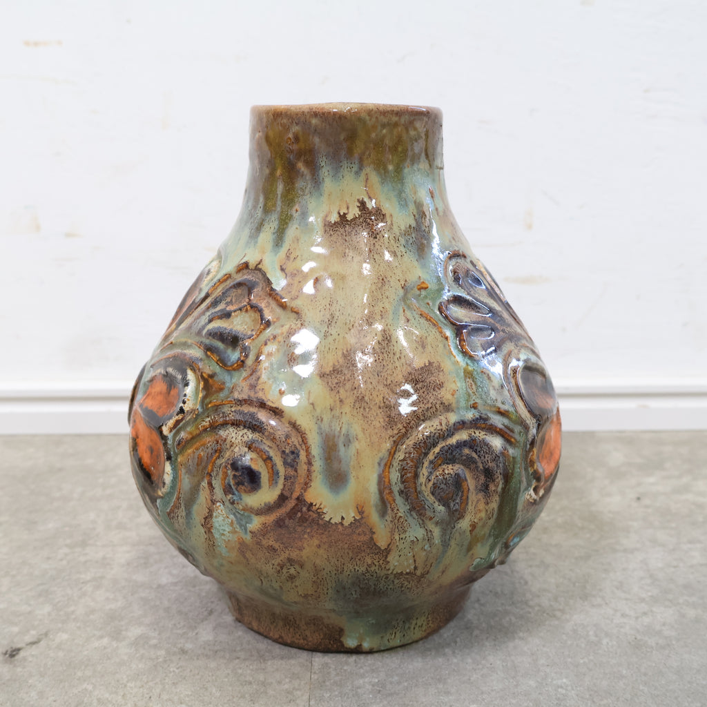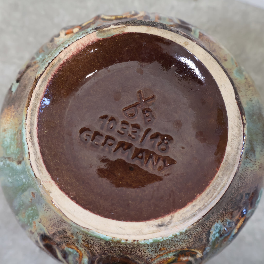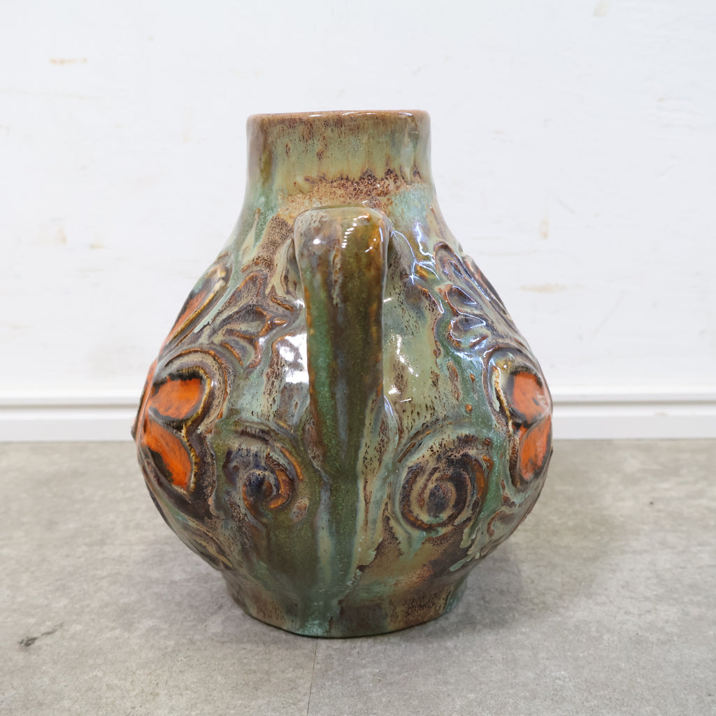 ドイツ製ヴィンテージのフラワーベースです。独創性のある大胆なお花の絵柄とデザインは、見ているだけで引き込まれるようですね。