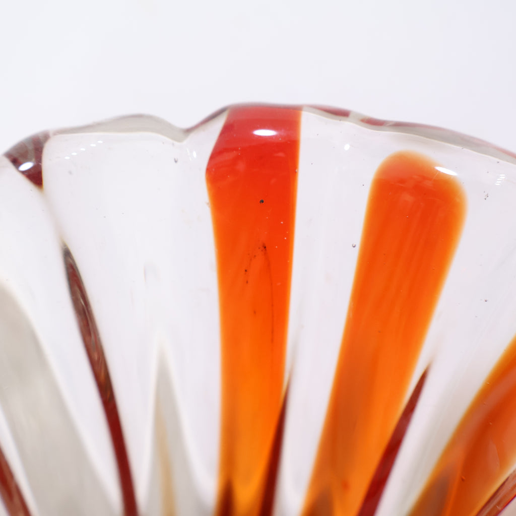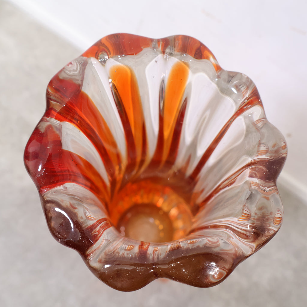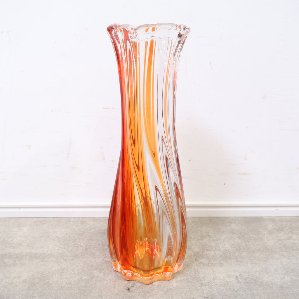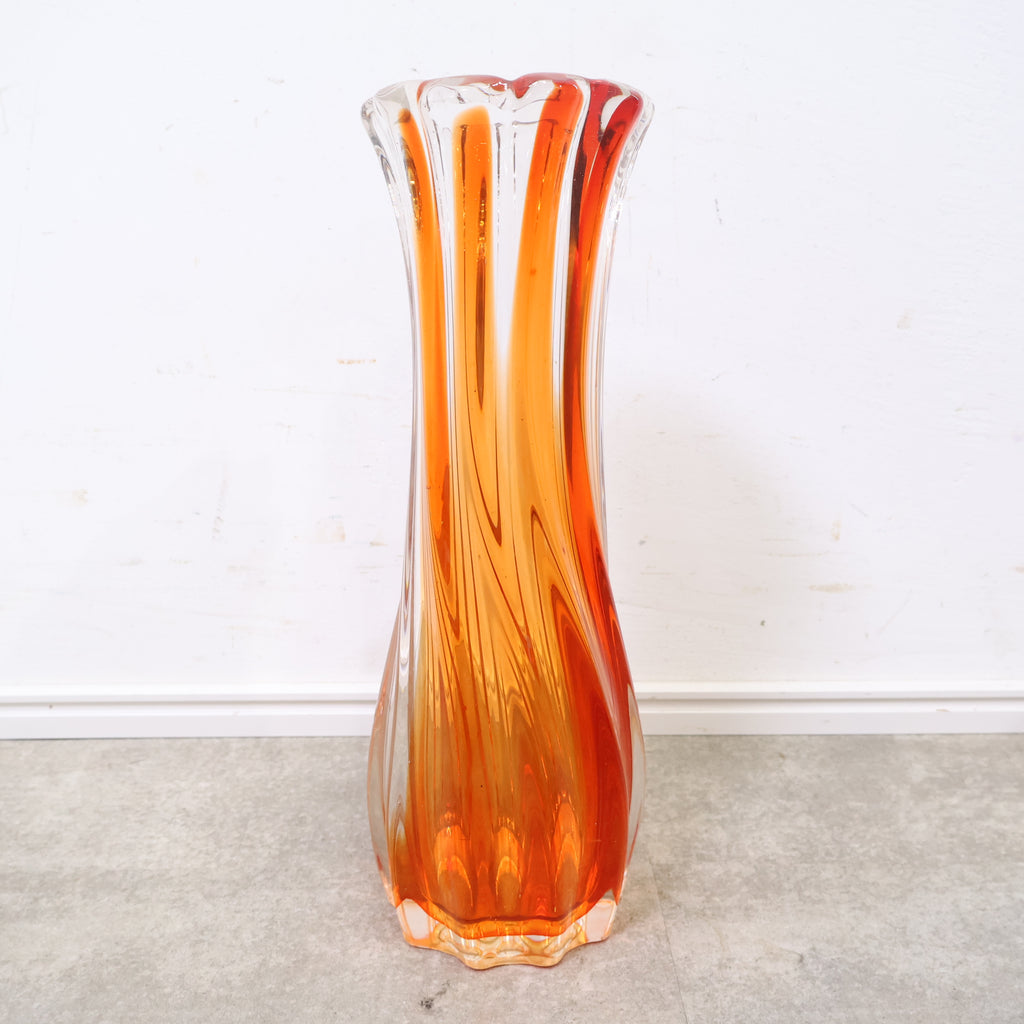 赤(オレンジ)とクリアガラスのコントラストが美しい、ツイストデザインの花瓶です。