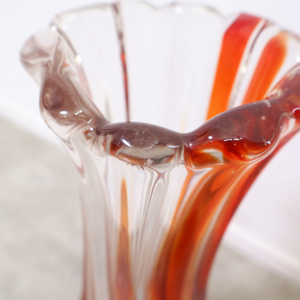 赤いスパイラル模様のガラス花瓶・フラワーベース