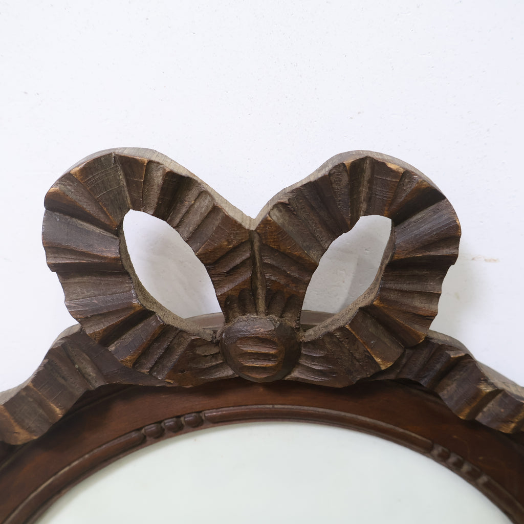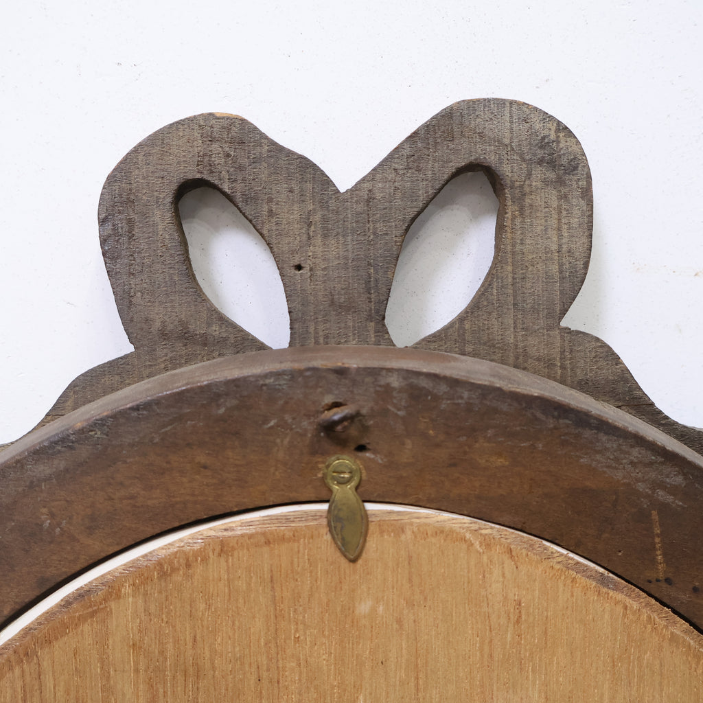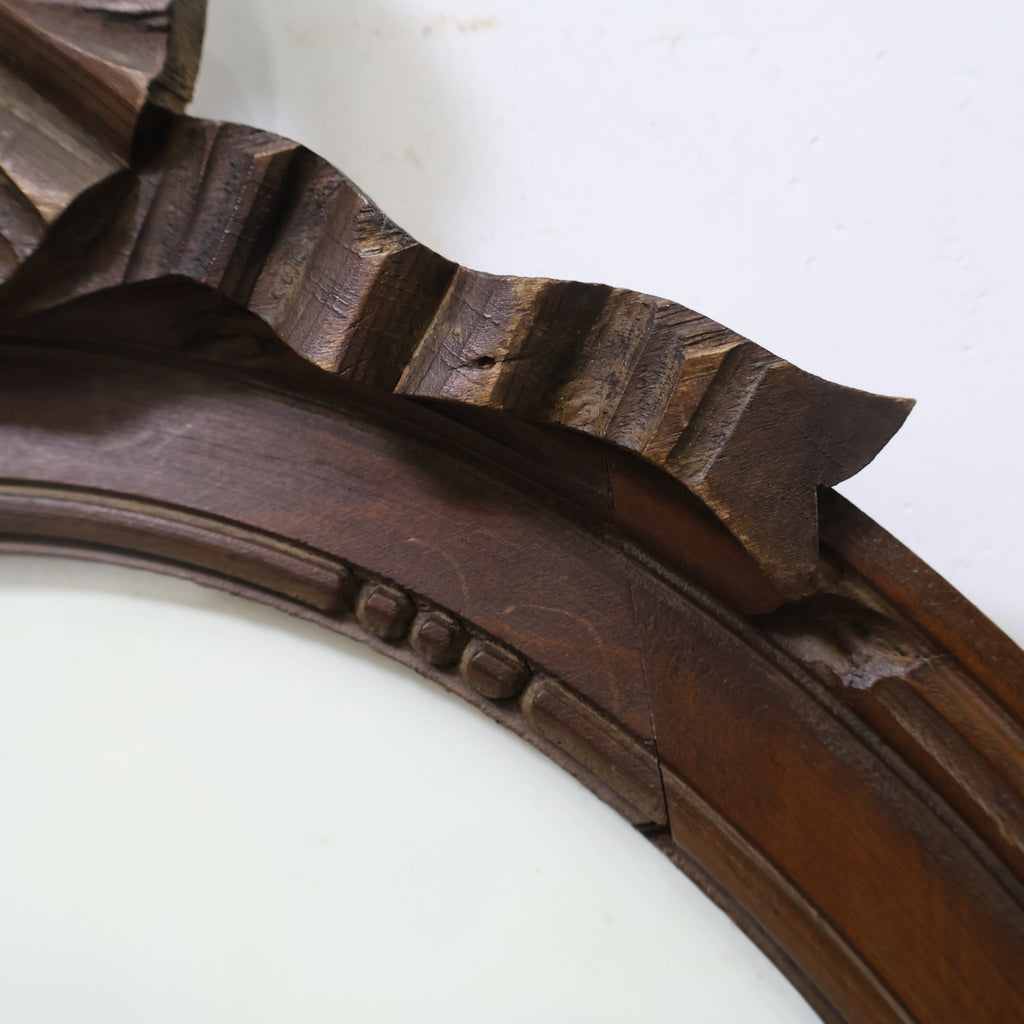 深みのある木の風合いと、繊細な彫刻が組み合わさり、特別な存在感を放っています。楕円形のフォルムは、壁に掛けるだけで空間に柔らかな表情をプラスしてくれますよ。