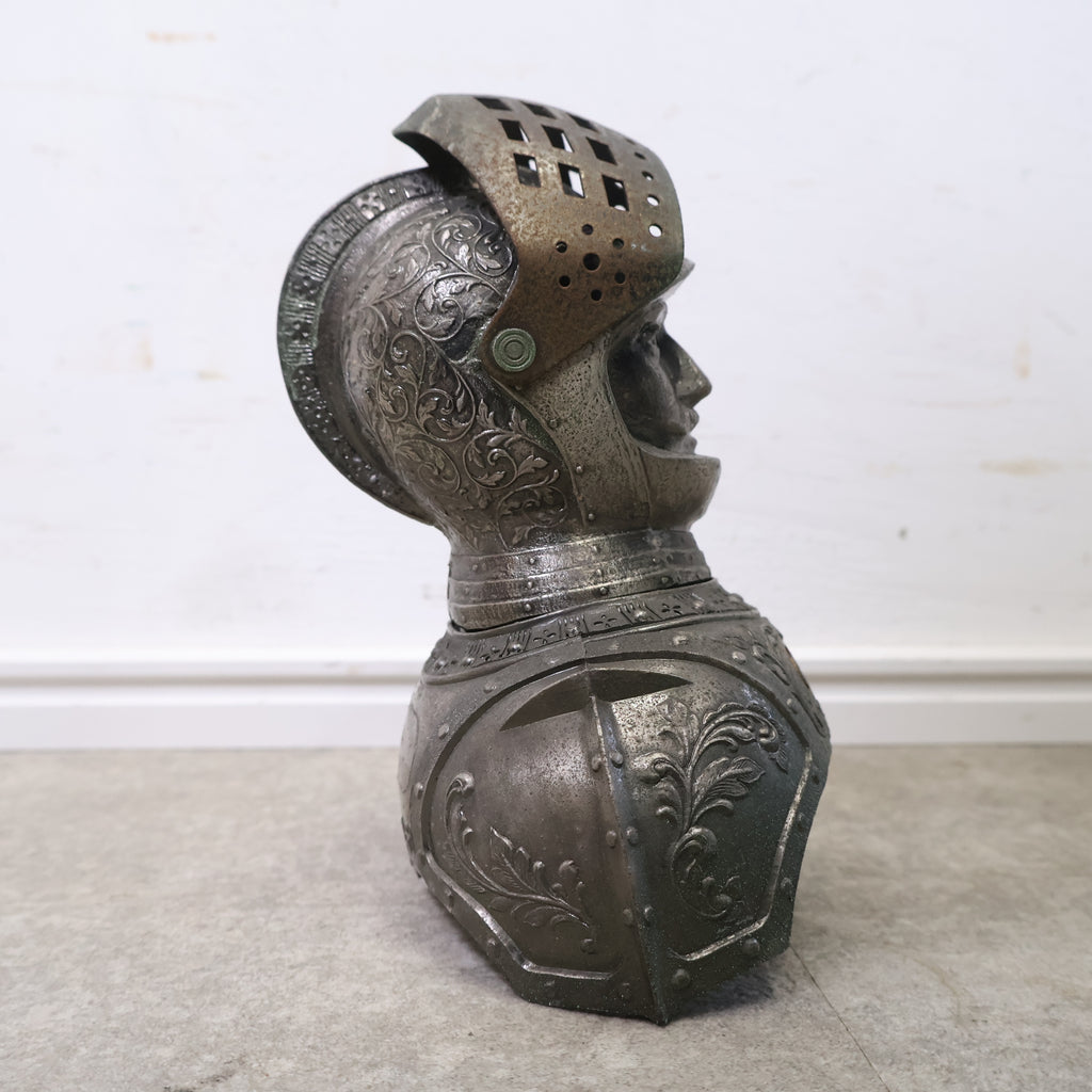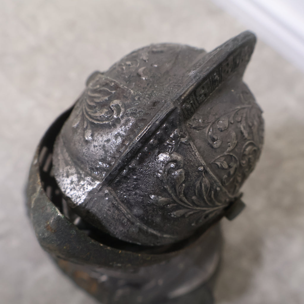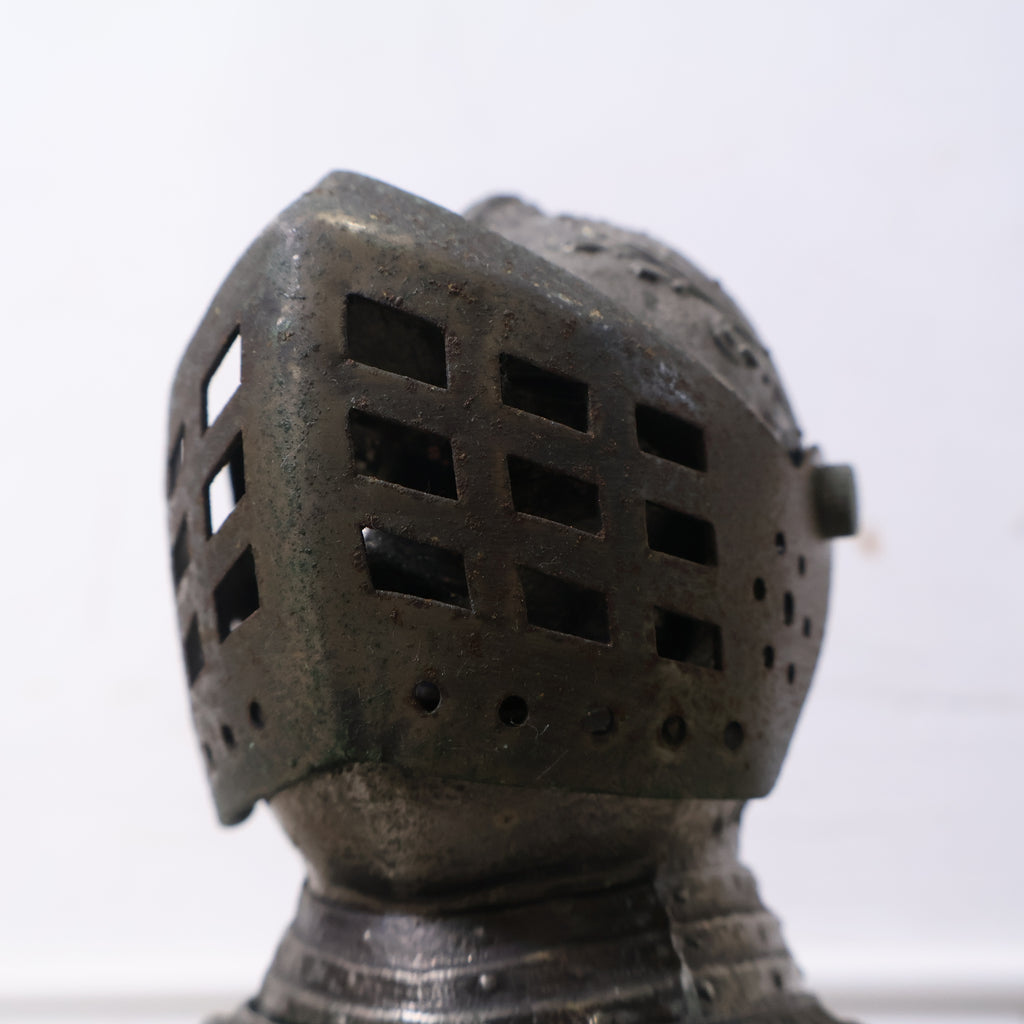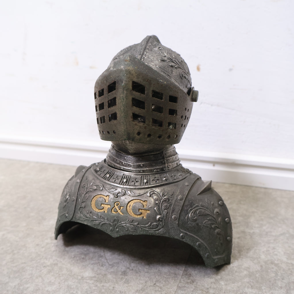 精巧に作られた甲冑のディテールと、威厳ある騎士の表情がたまりません!くすんだメタリックな質感が渋く、胸元の「G&G」のロゴがレトロでミステリアスな雰囲気を醸し出しています。重厚感たっぷりで、置くだけで空間に確かな存在感を与えてくれます。