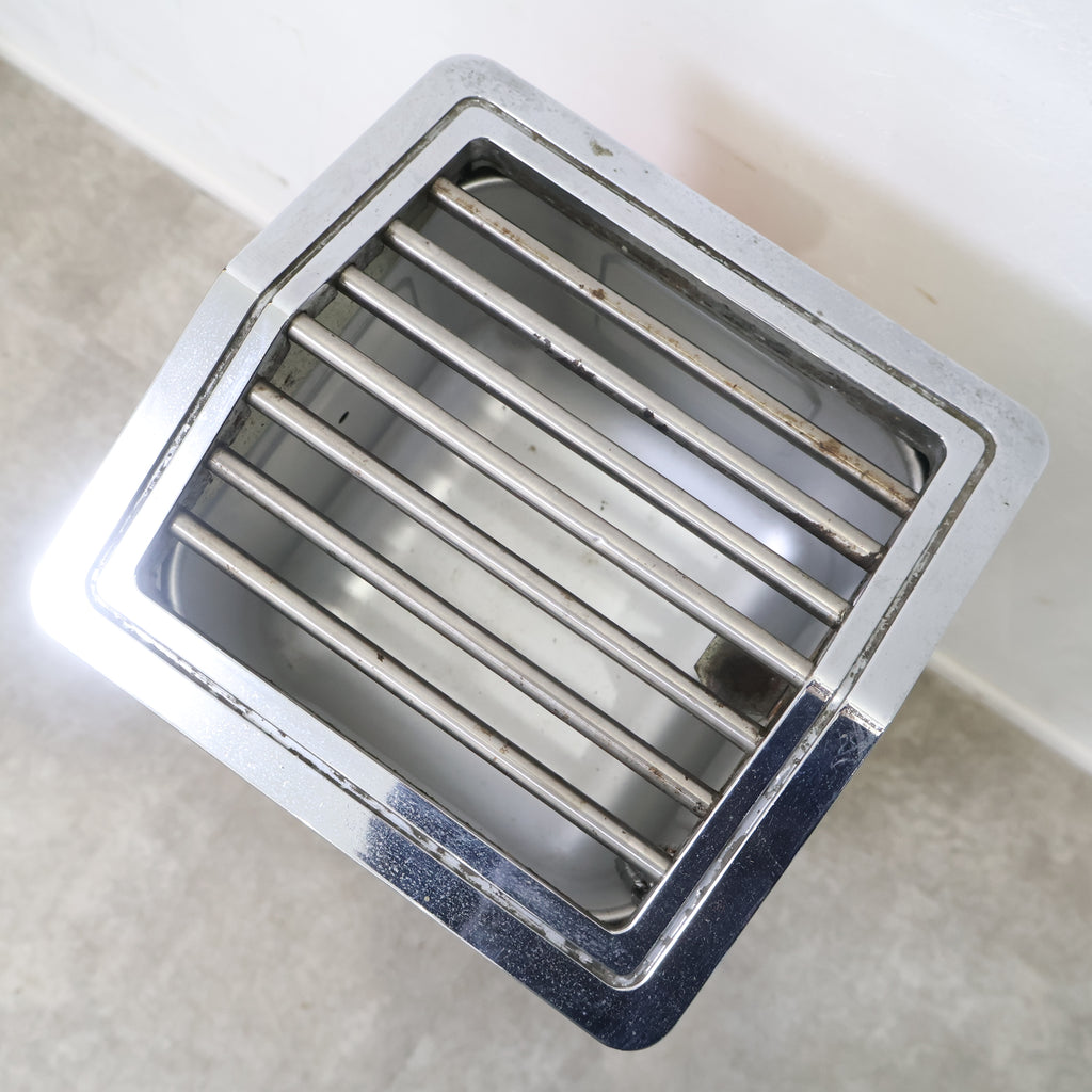 上部にはクロームメッキの吸い殻投入口があり、内部はゴミ箱としても使える大容量の構造です。土台は安定感のあるブラックの台座。