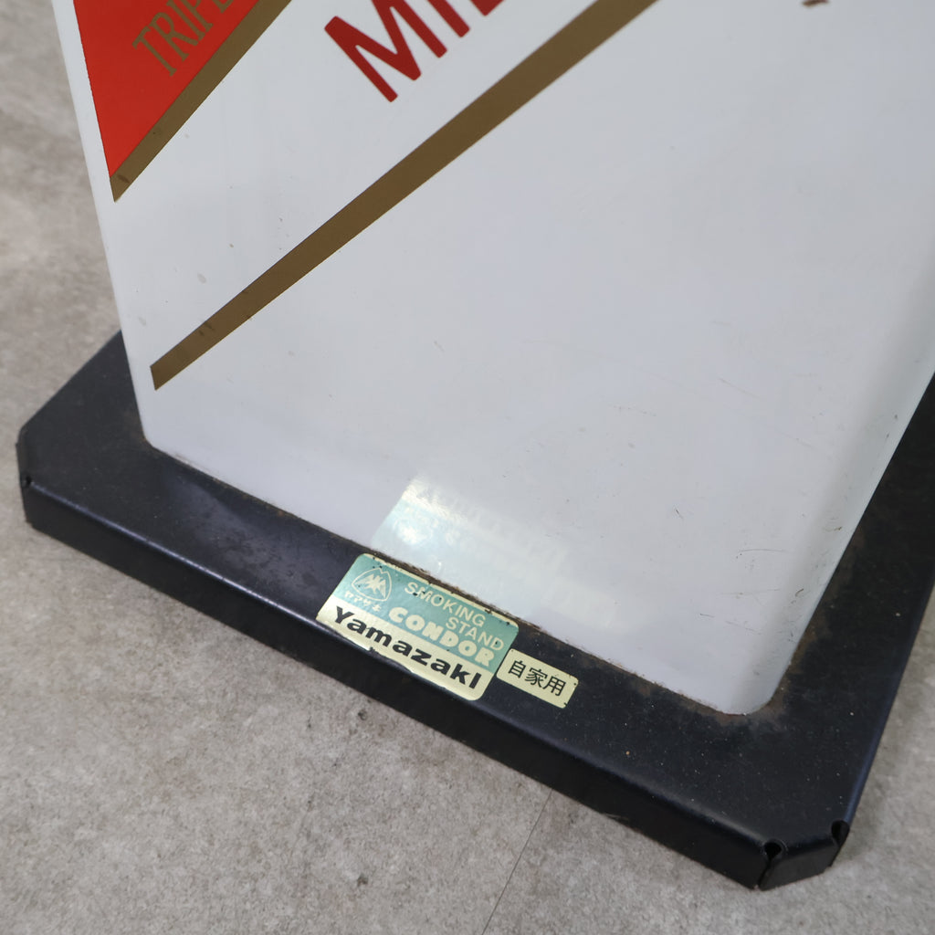 ホワイトの本体に、レッドとゴールドのロゴが鮮やかにプリントされた、昭和レトロな雰囲気を色濃く残す貴重なアイテムです。「吸い殻はキチッと灰皿へ」のキャッチコピーも、当時の時代背景を感じさせます。