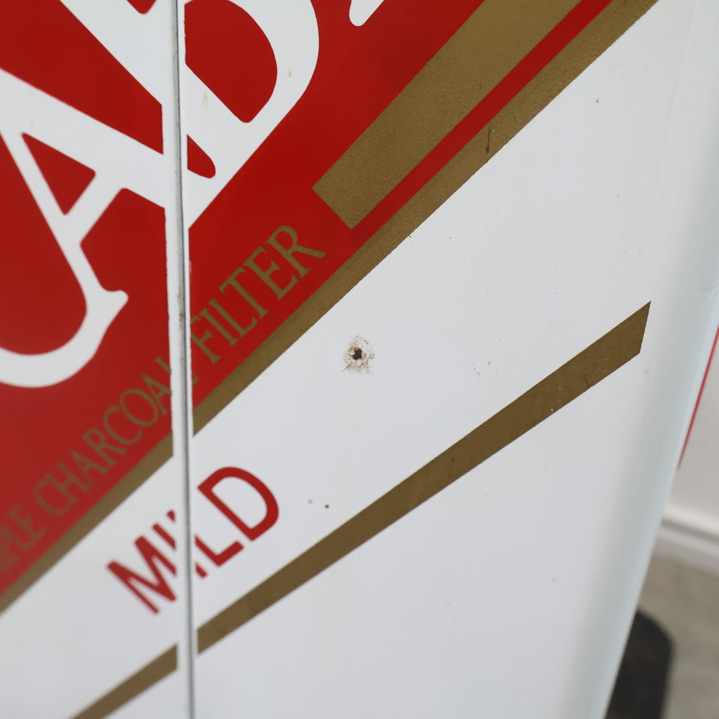懐かしのたばこ銘柄「CABIN 85」のデザインが施された、当時の業務用スタンド灰皿です。