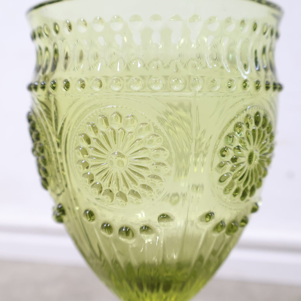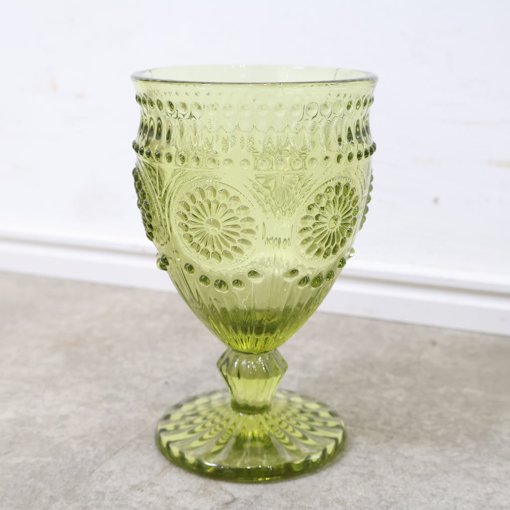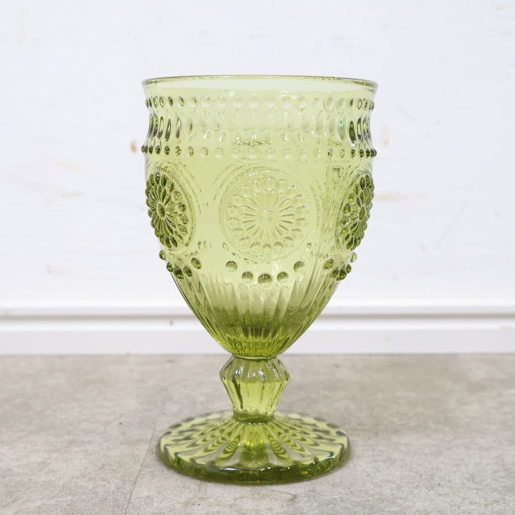 淡いオリーブグリーンが美しい、ゴブレットグラスです。