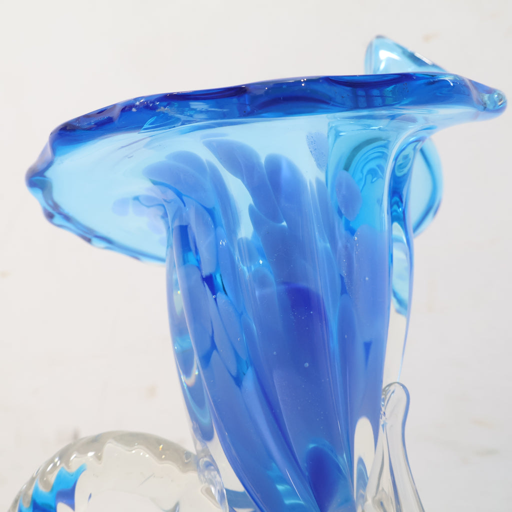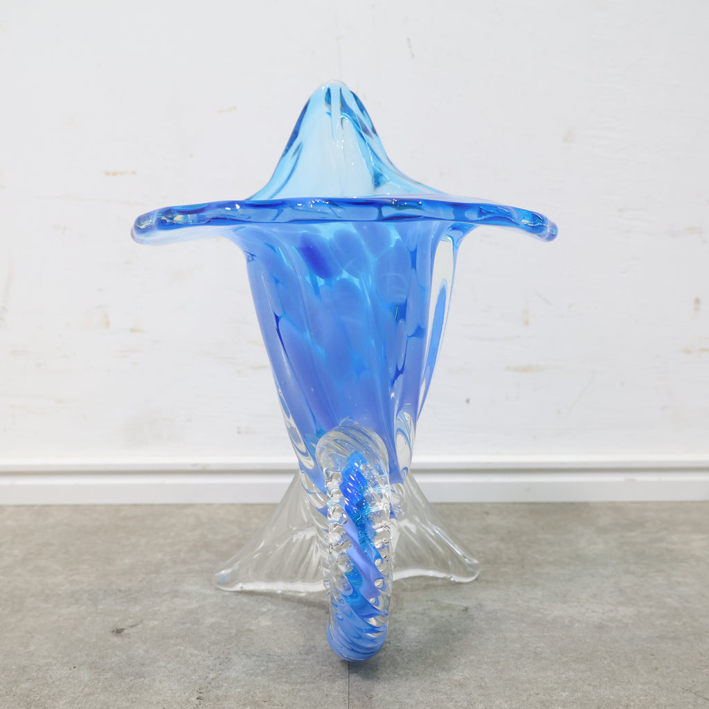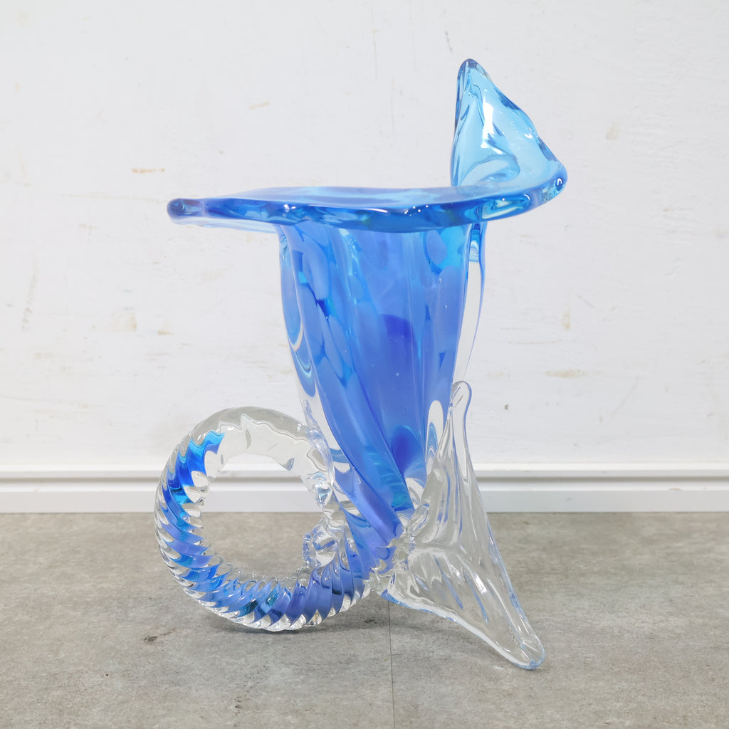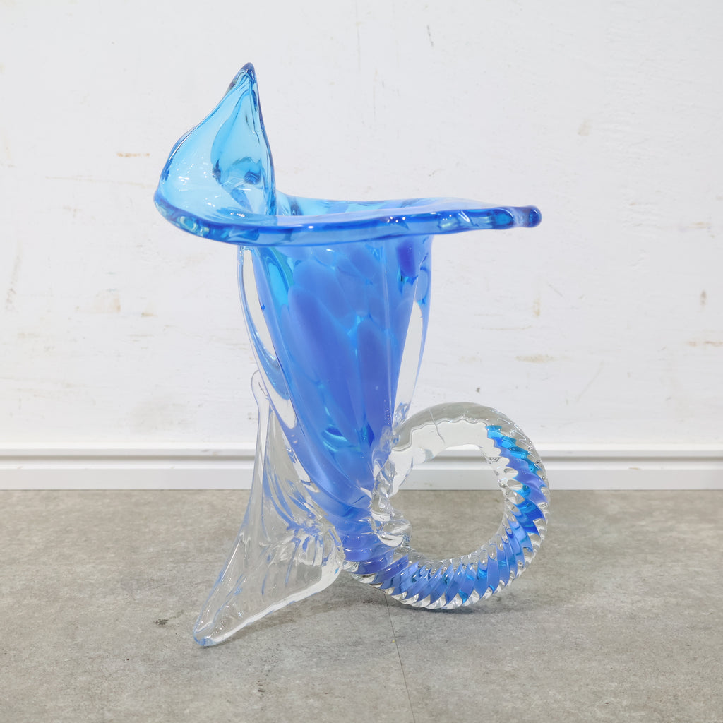 コバルトブルーとクリアガラスのコントラストが美しい、ハンドメイドのガラス製花器です。