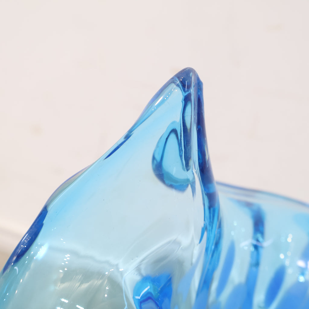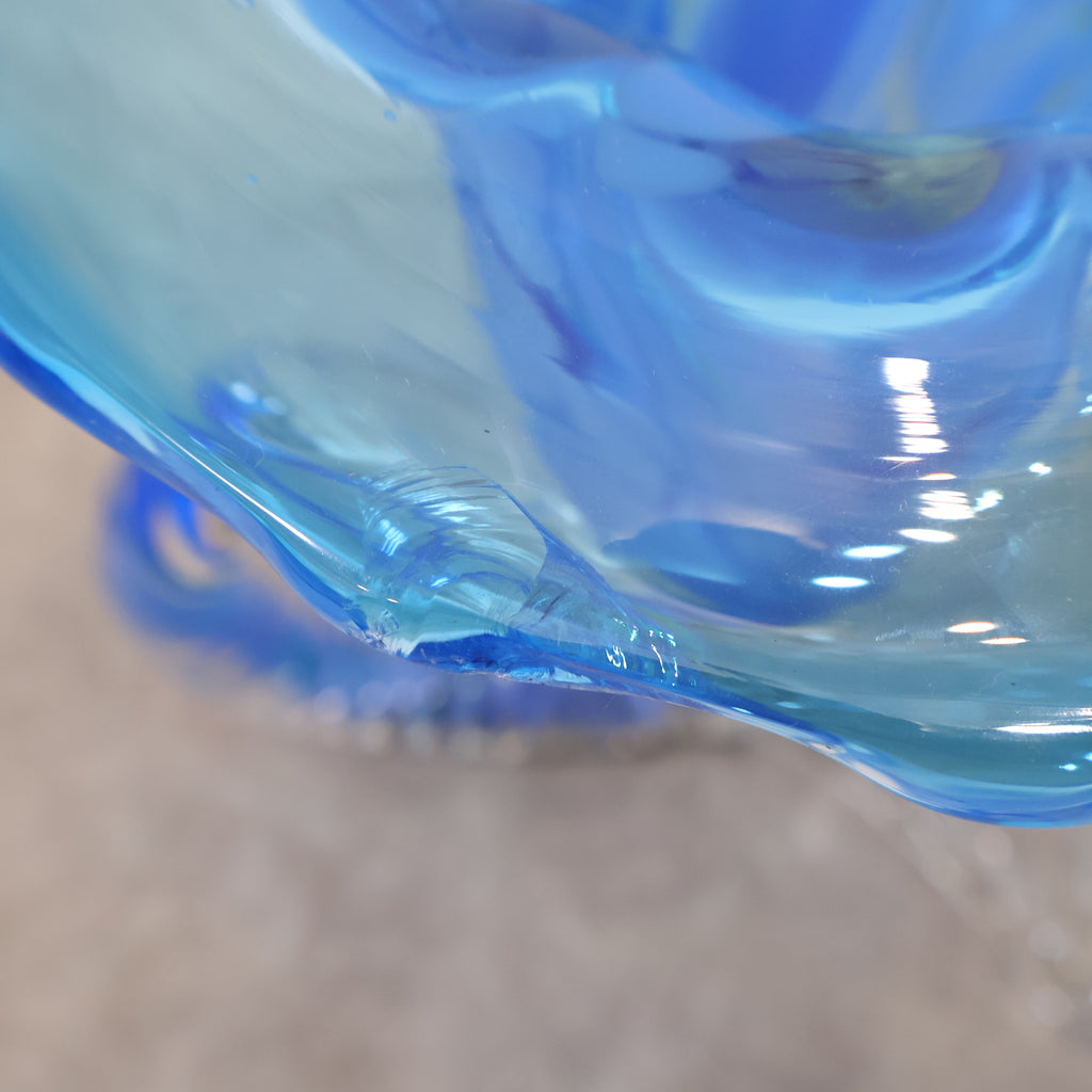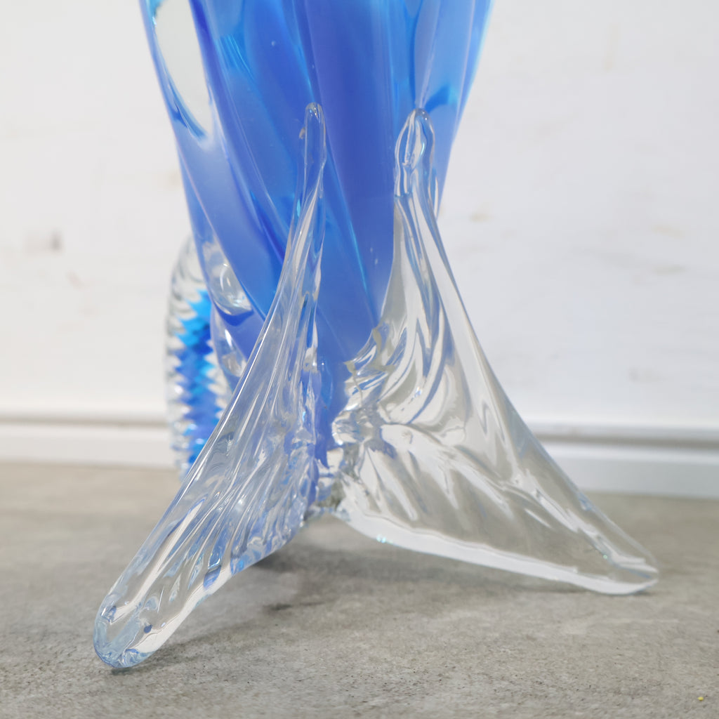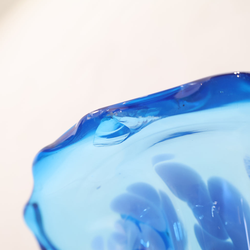 コバルトブルーとクリアガラスのコントラストが美しい、ハンドメイドのガラス製花器です。