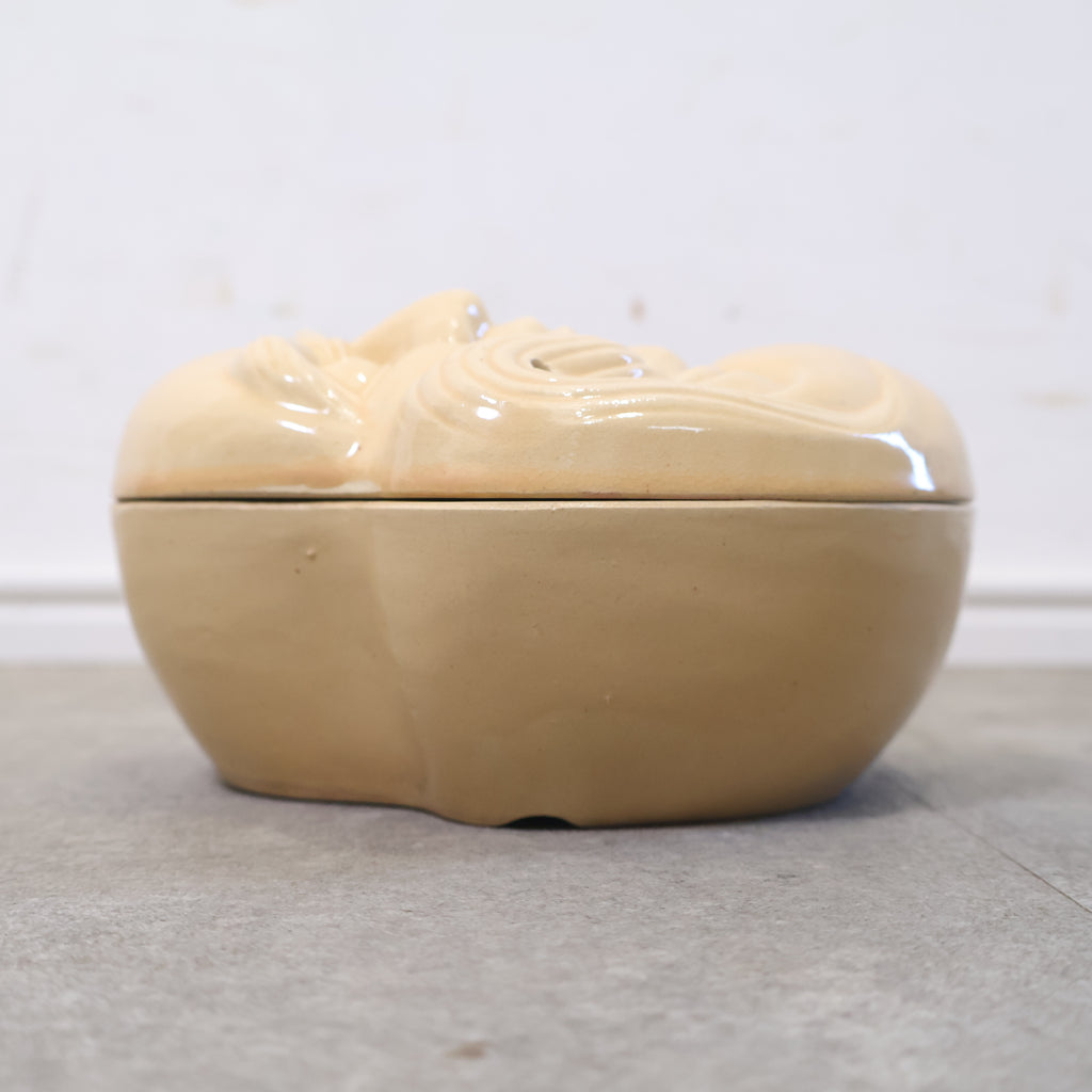 群馬県高崎で長年愛される名物駅弁「高崎だるま弁当」に使用されていた、だるま型陶器容器です。