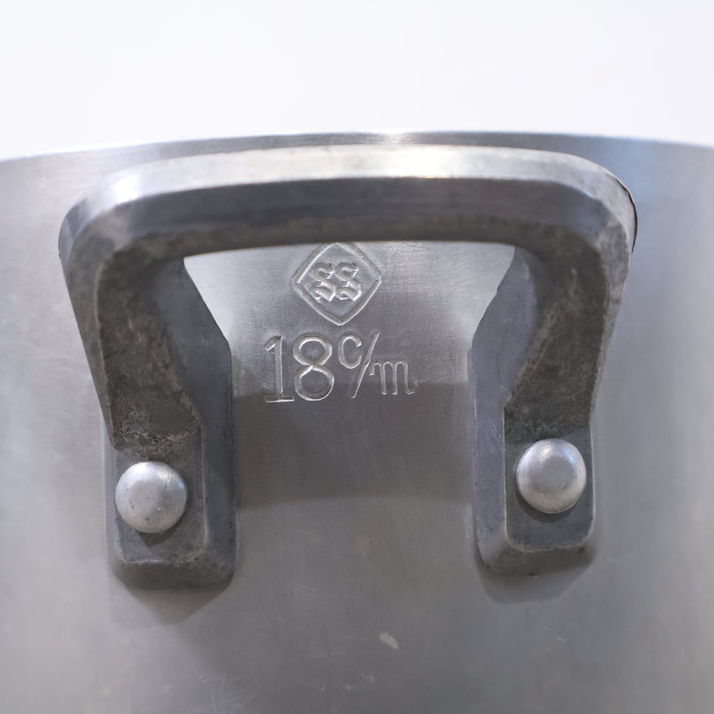 直径18cmと使いやすいサイズで、家庭のキッチンにも導入しやすい大きさです。熱伝導率が高く、均一に熱が伝わるアルミ製のため、煮込み料理やスープ、だしを取るのに最適です。