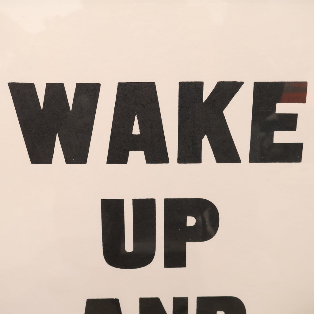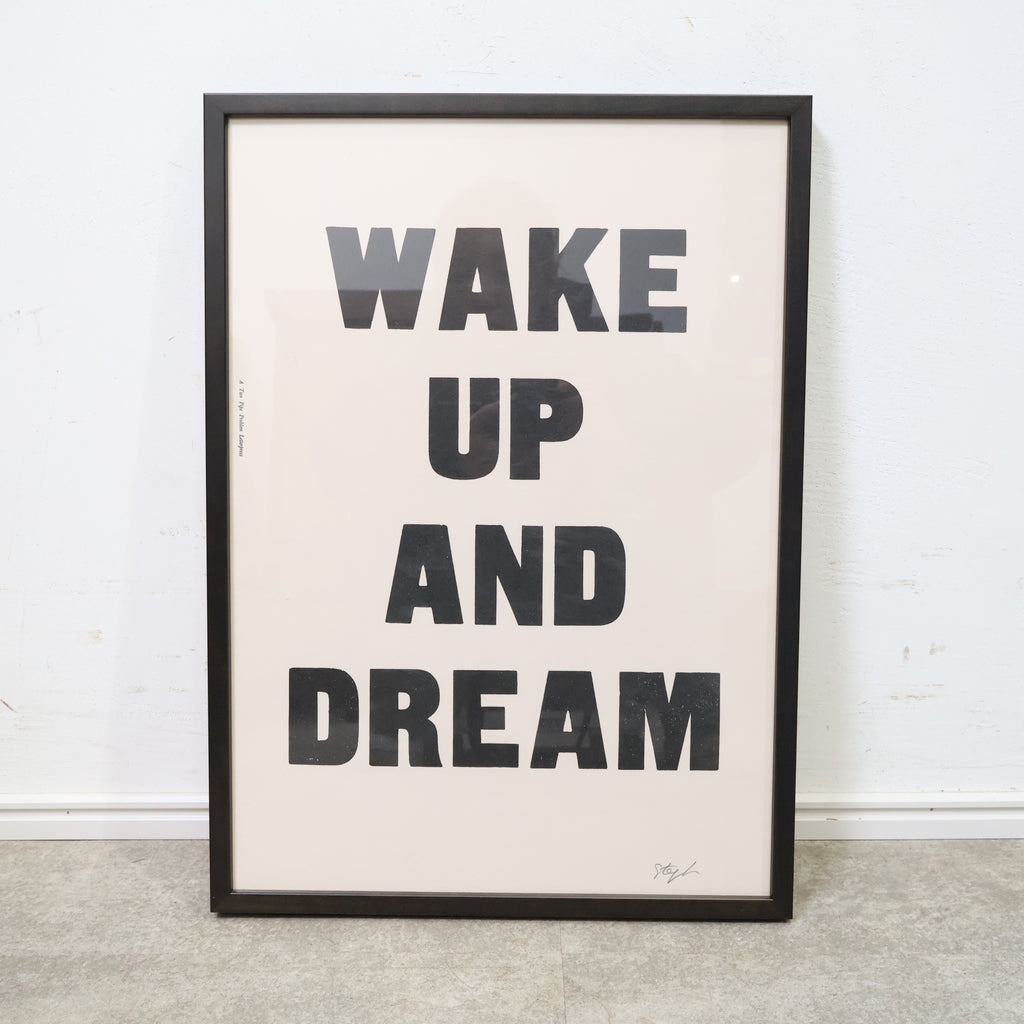 「WAKE UP AND DREAM」という言葉を、レタープレス特有の質感で表現したA TWO PIPE PROBLEMの作品。シンプルなモノトーン配色と大胆なタイポグラフィが、空間に程よい緊張感と知性をプラスしてくれます。