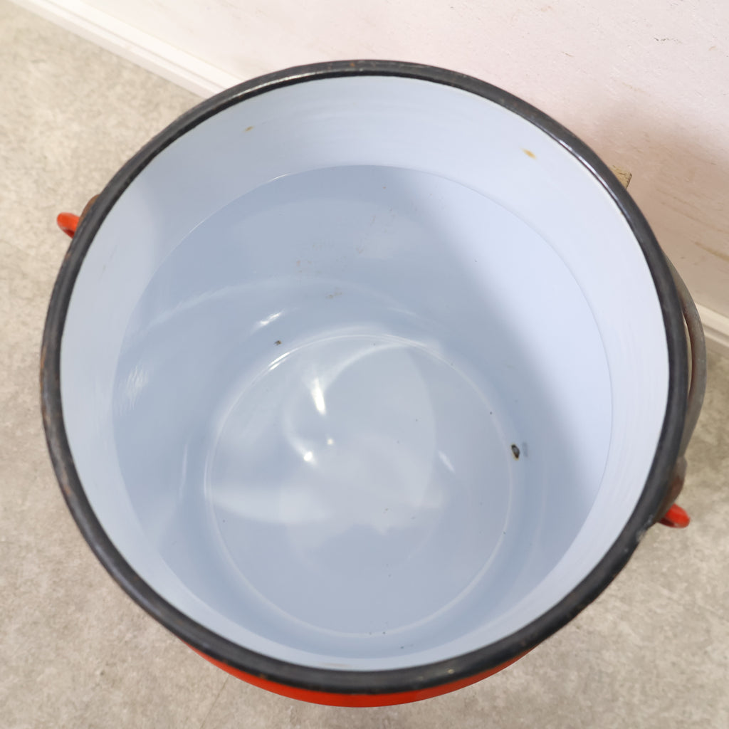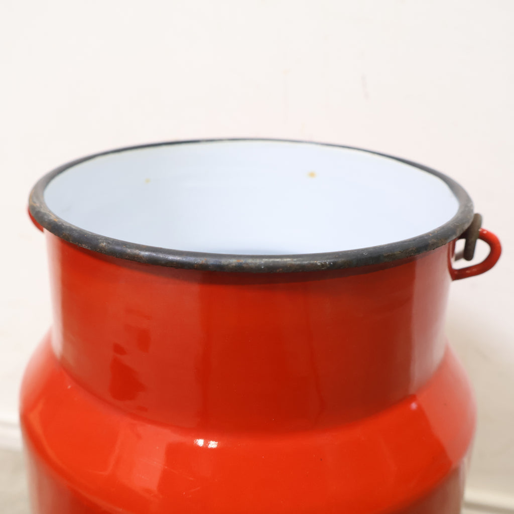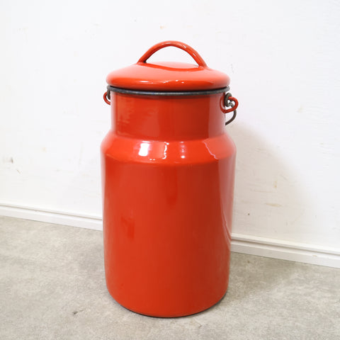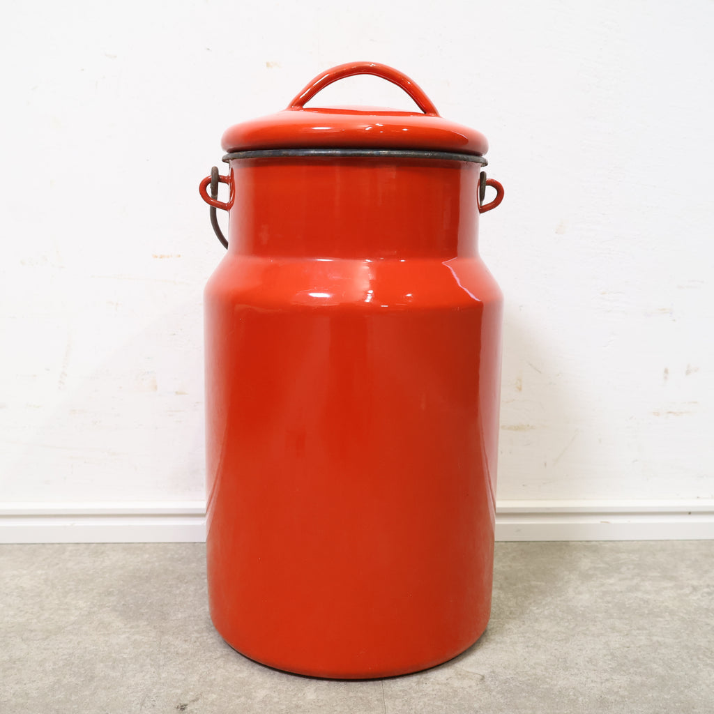 淡いレッドが目を引くアンティークのユーゴスラビア製ホーローミルク缶です。