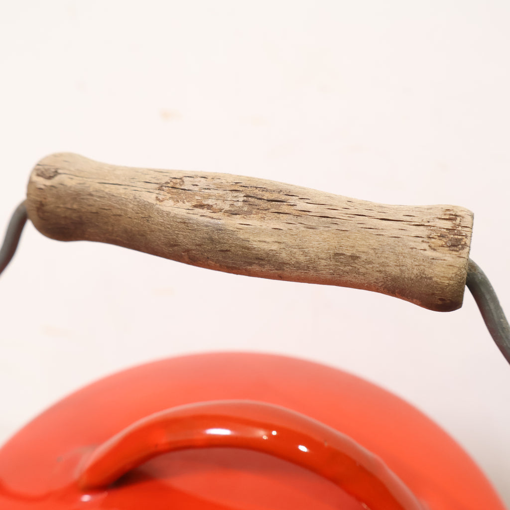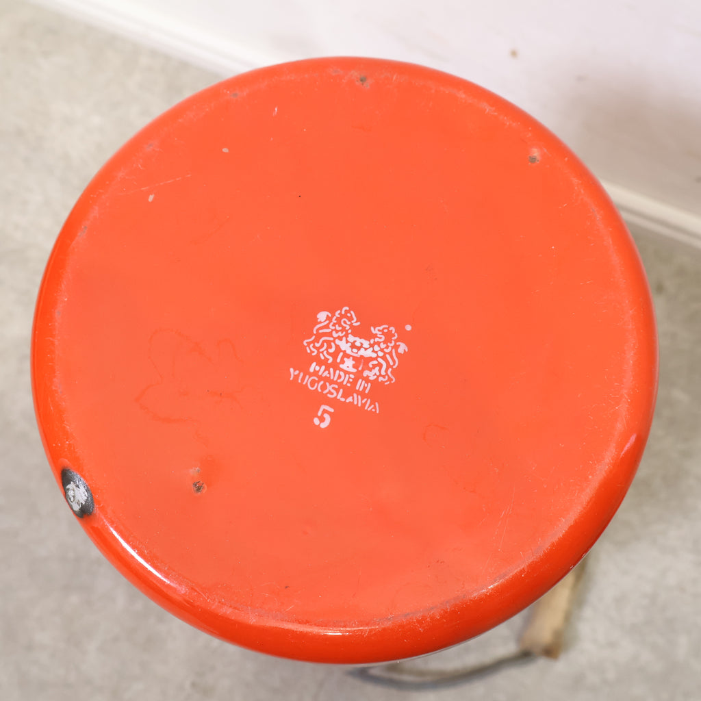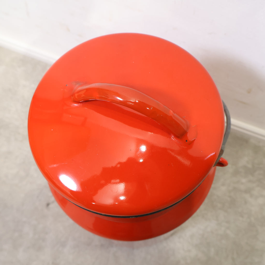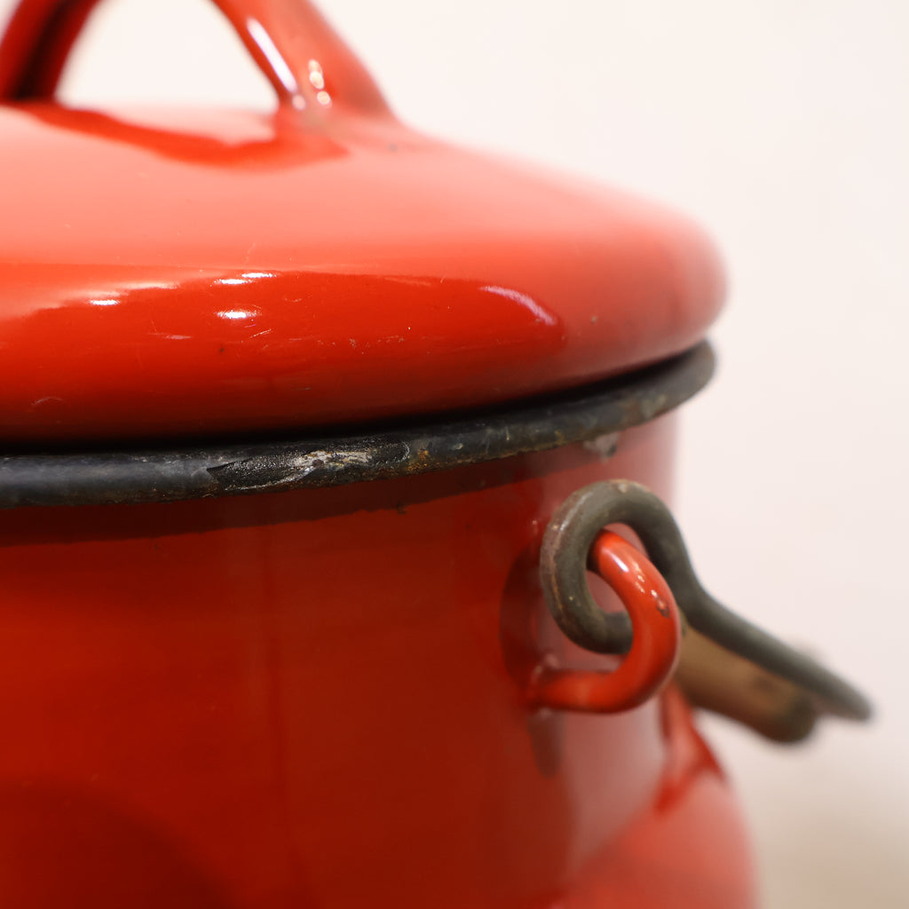 淡いレッドが目を引くアンティークのユーゴスラビア製ホーローミルク缶です。