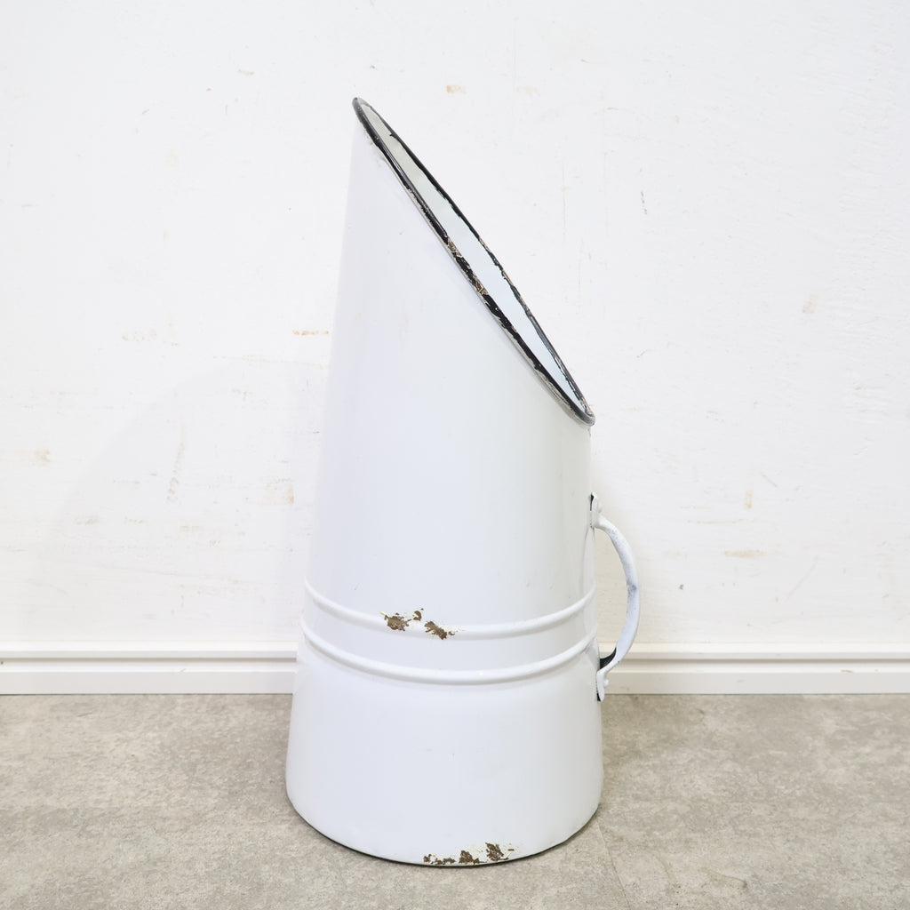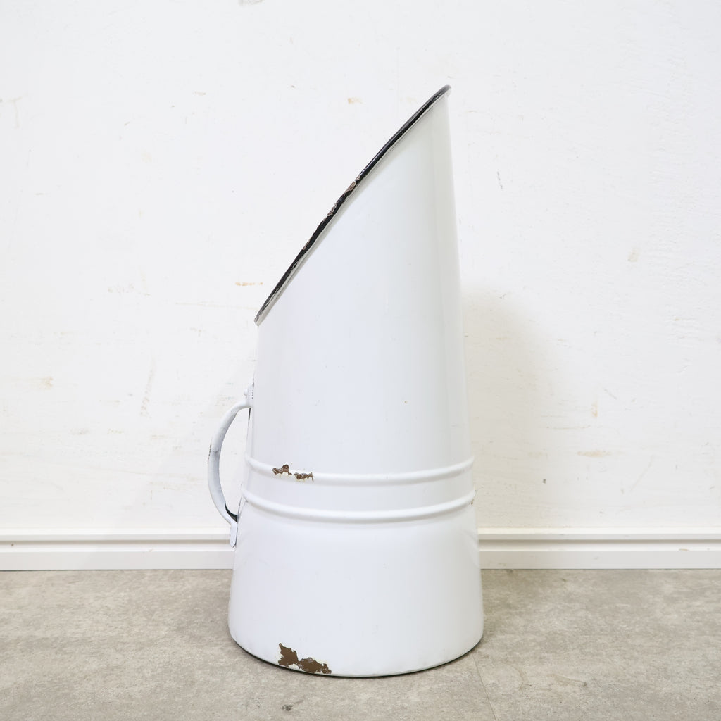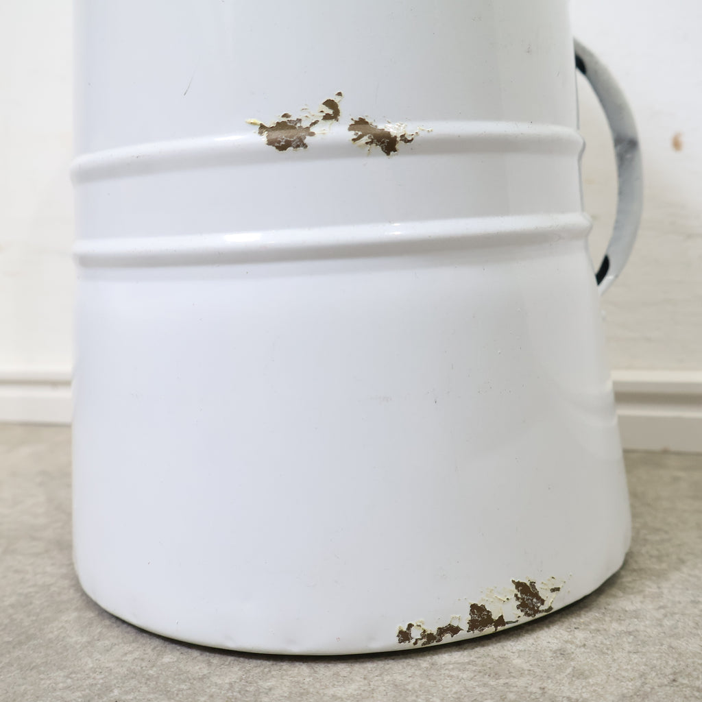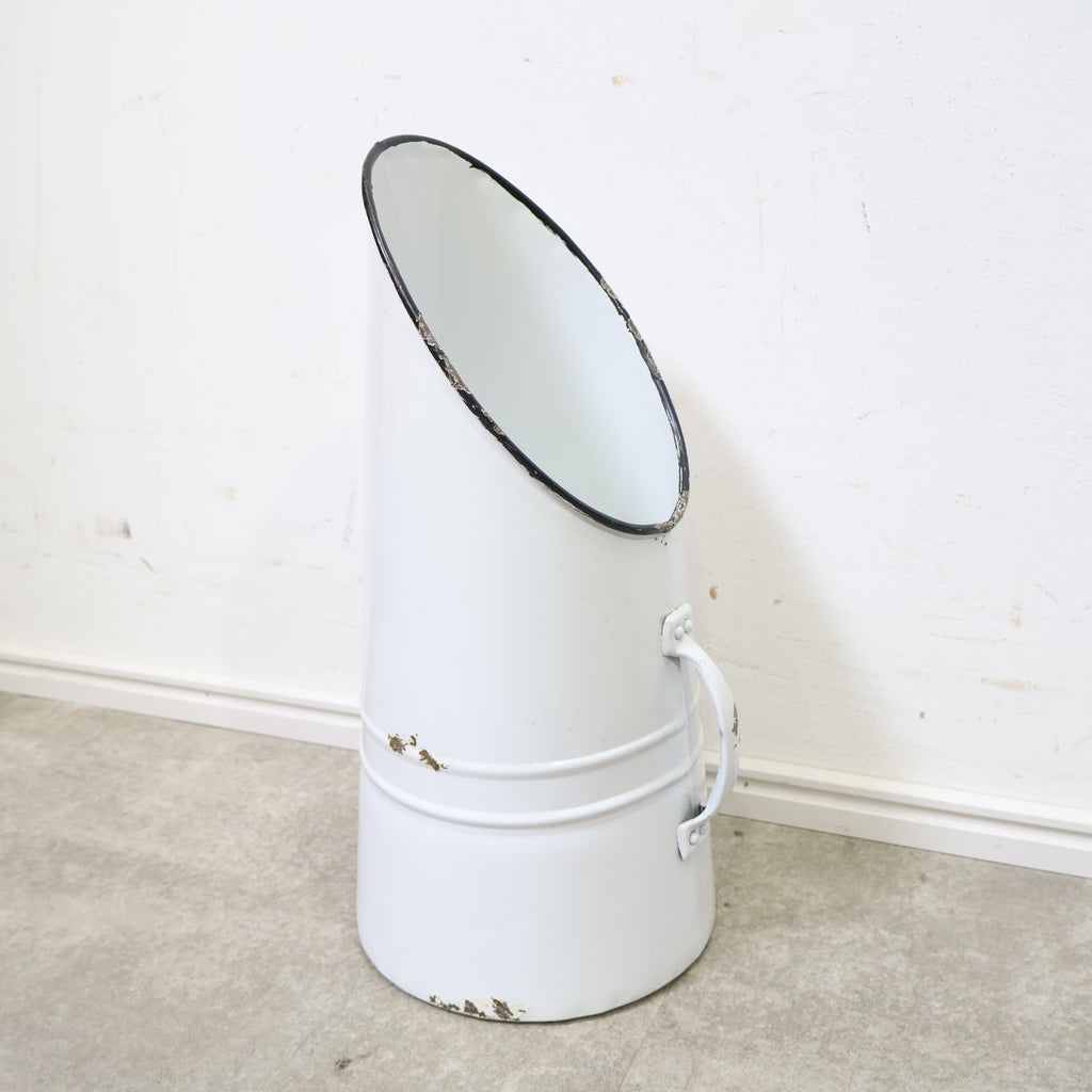 斜めにカットされた開口部が印象的で、置くだけで雰囲気のあるディスプレイが完成します。無機質になりがちなブリキ素材ながら、やわらかなホワイトカラーとフォルムがフレンチカントリーやナチュラルインテリアによく馴染みます。 ドライフラワーやグリーンをラフに活けたり、ガーデンツールやスリッパ収納としてもおすすめ。