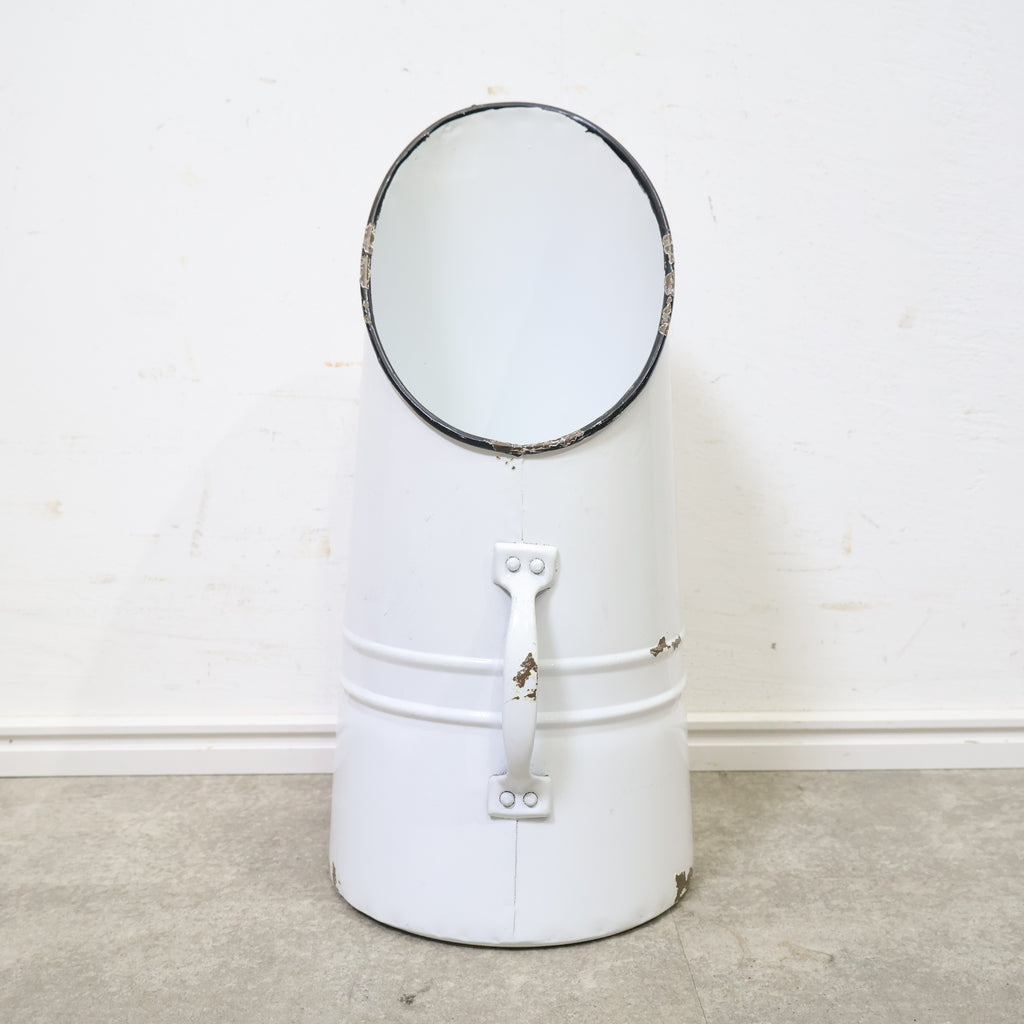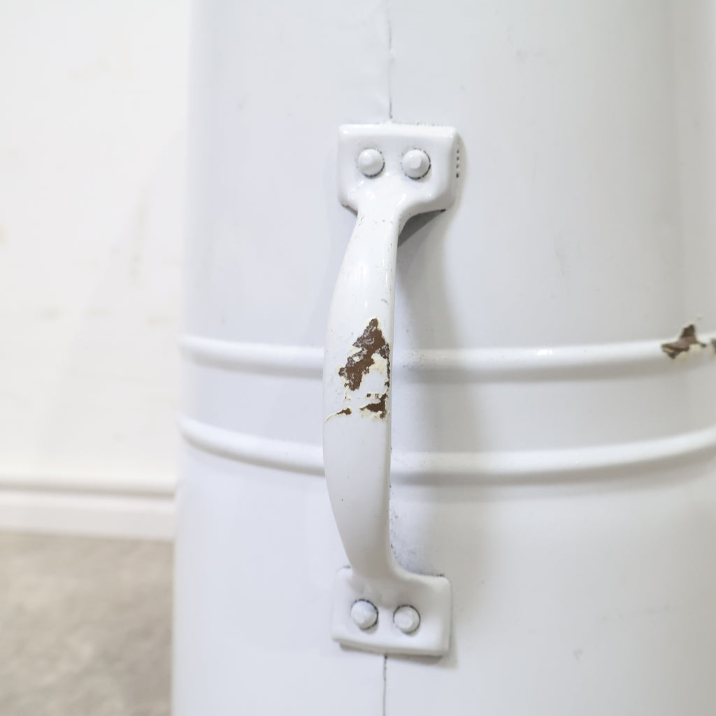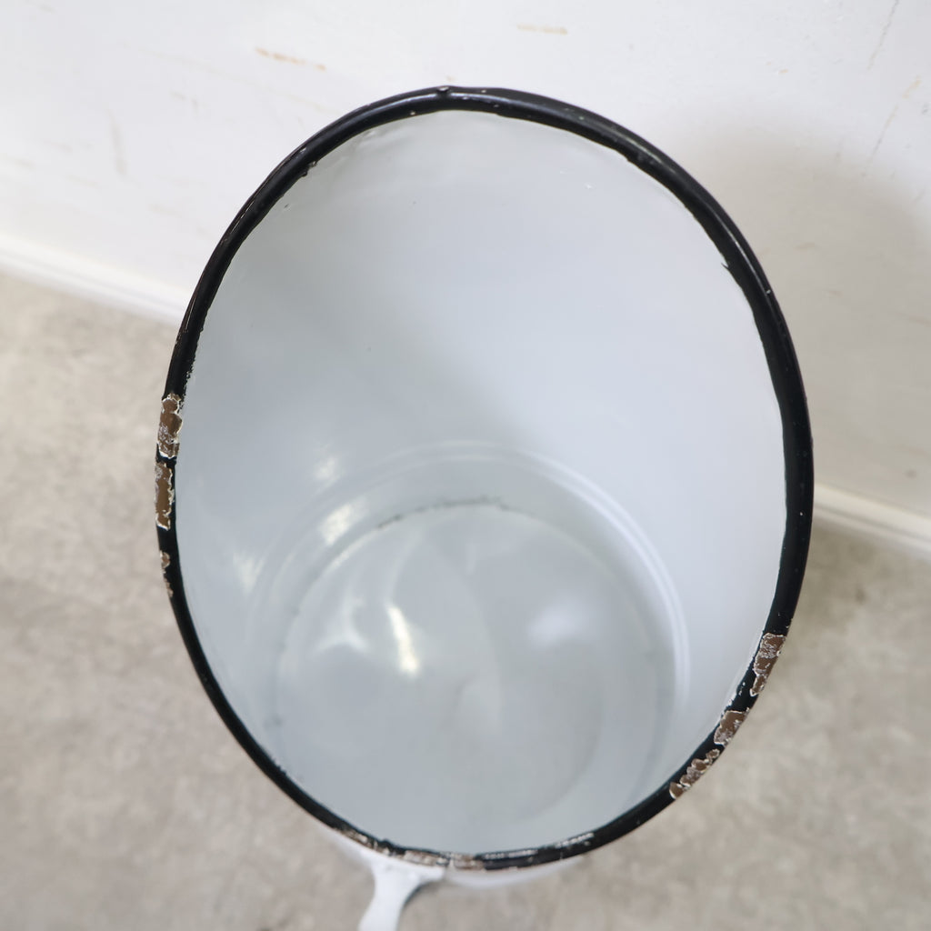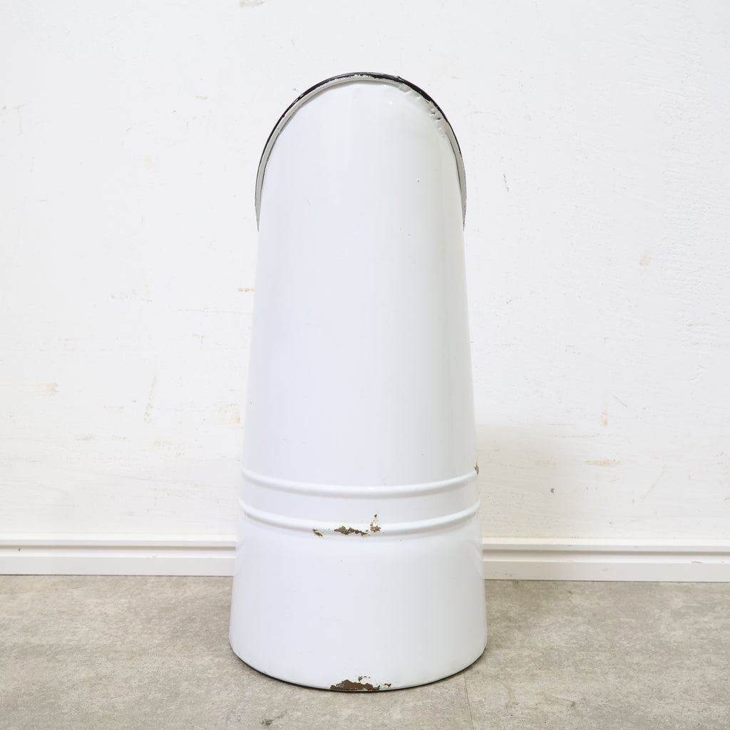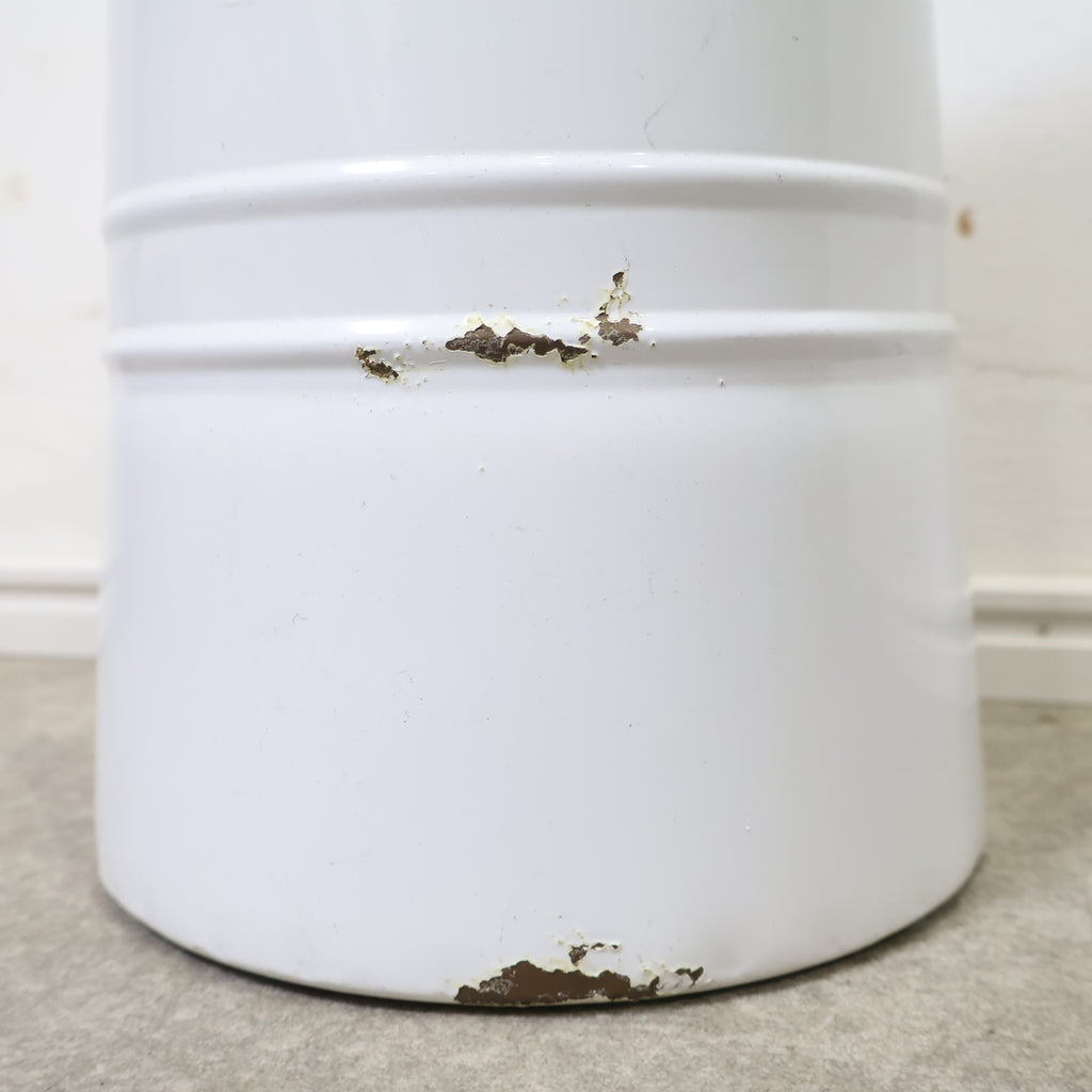 斜めにカットされた開口部が印象的で、置くだけで雰囲気のあるディスプレイが完成します。無機質になりがちなブリキ素材ながら、やわらかなホワイトカラーとフォルムがフレンチカントリーやナチュラルインテリアによく馴染みます。 ドライフラワーやグリーンをラフに活けたり、ガーデンツールやスリッパ収納としてもおすすめ。
