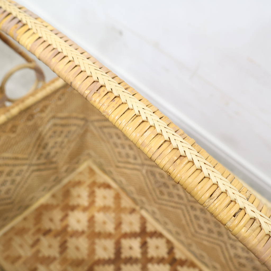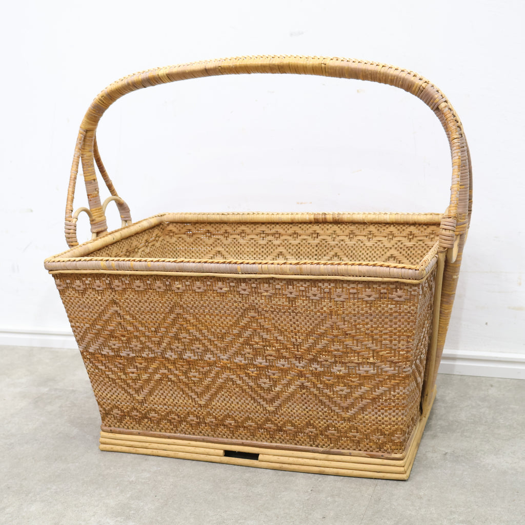 ナチュラルインテリアや昭和レトロ、少し民藝寄りの空間とも相性が良く、暮らしの中に自然と溶け込みながら長く寄り添ってくれる存在です。使うほどに風合いが増し、自分の暮らしに馴染んでいく、そんなヴィンテージバスケットの魅力を楽しんでいただけます。