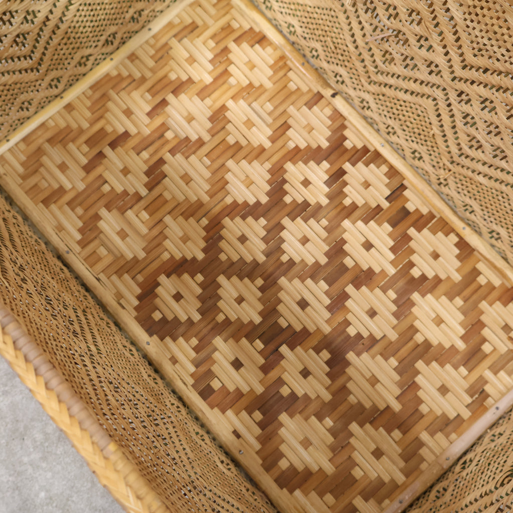 丁寧に編み込まれたラタンの表情が美しいバスケットです。