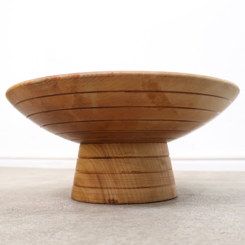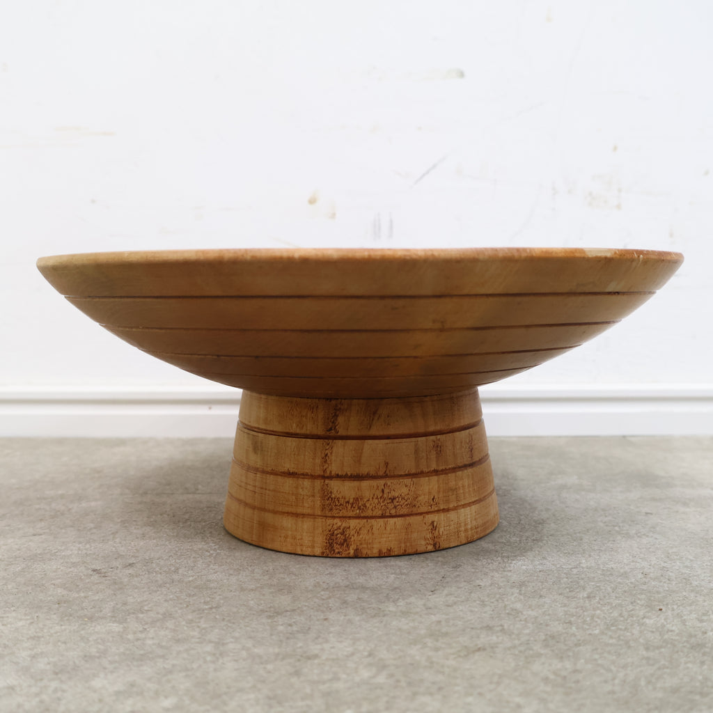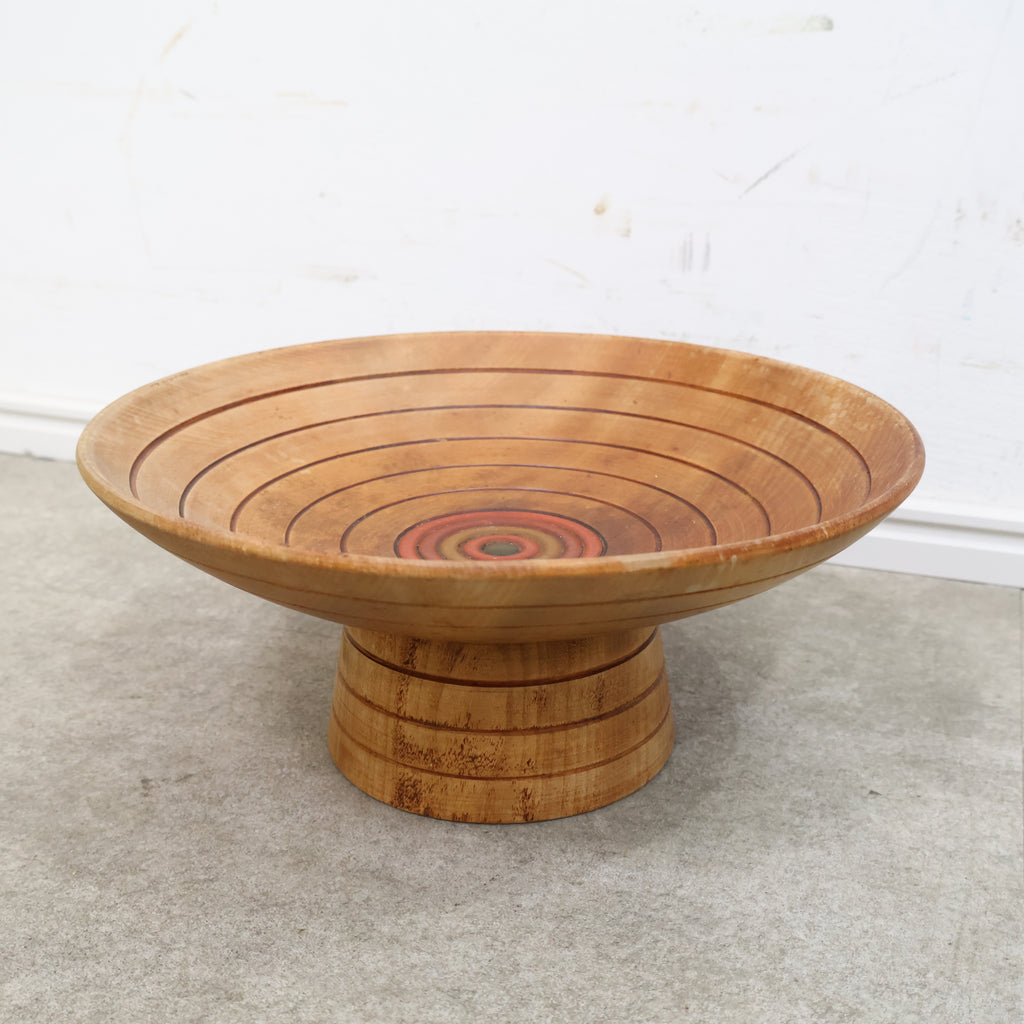 挽き物の木地に同心円状の模様を施した独楽塗は、讃岐漆器を代表する技法のひとつ。中央から広がる美しい円模様が印象的で、素朴ながらも独特の存在感があります。 高杯の形状は、菓子器や盛り皿としてはもちろん、果物や小物を飾る器としても使いやすいデザイン。木製ならではの温もりと、手仕事の風合いが感じられる一品です。