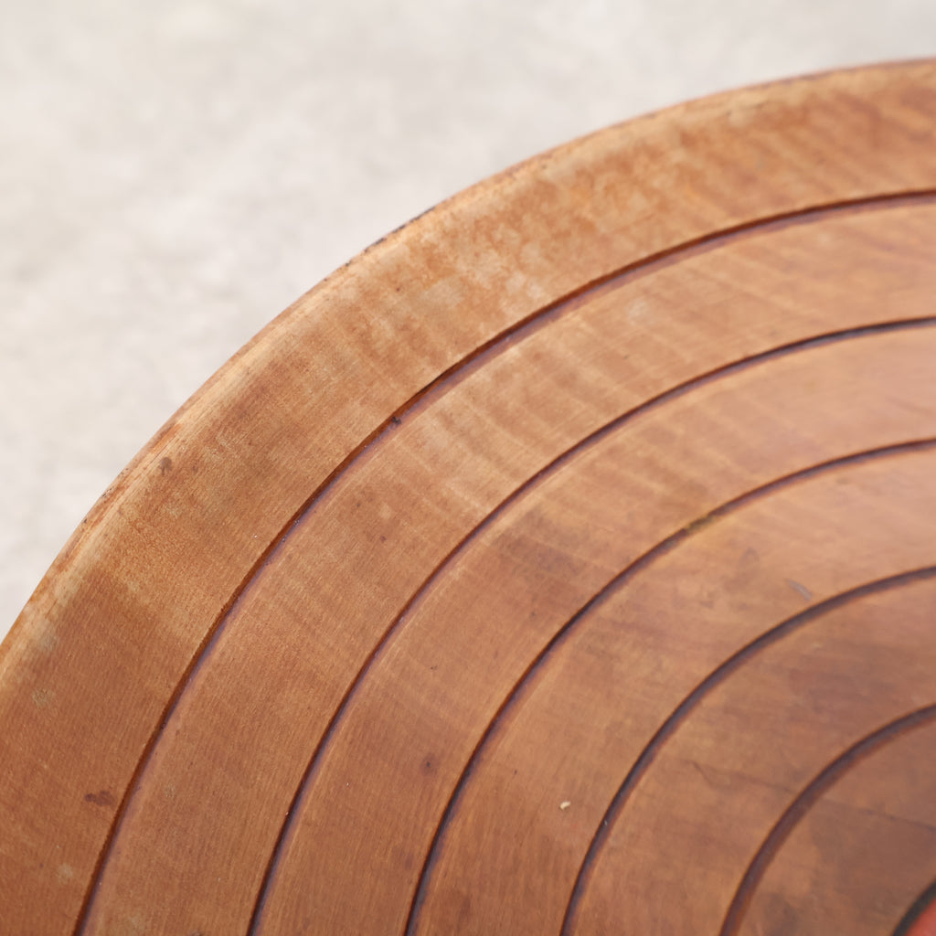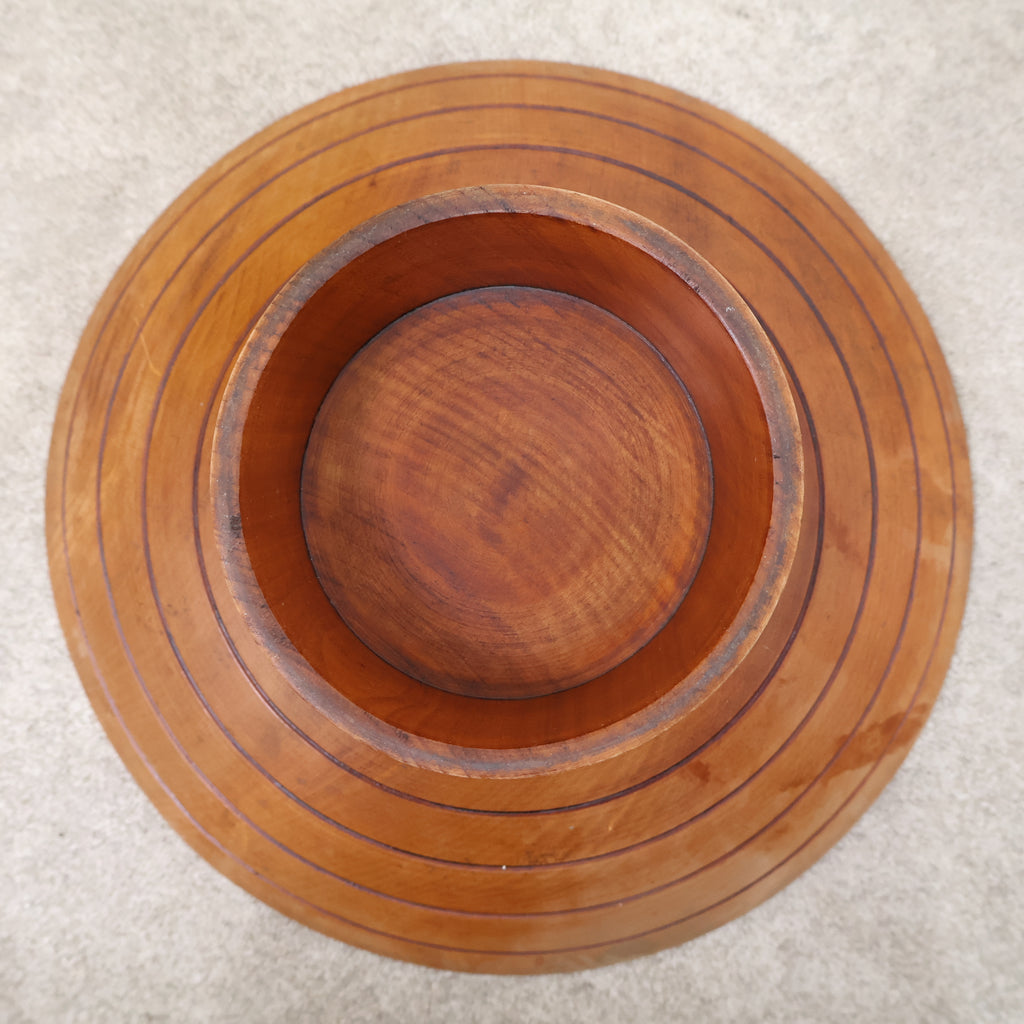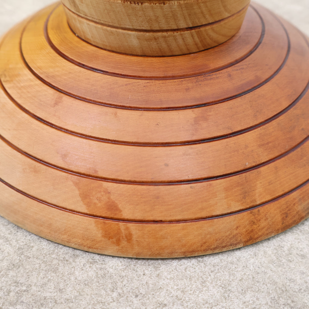 挽き物の木地に同心円状の模様を施した独楽塗は、讃岐漆器を代表する技法のひとつ。中央から広がる美しい円模様が印象的で、素朴ながらも独特の存在感があります。 高杯の形状は、菓子器や盛り皿としてはもちろん、果物や小物を飾る器としても使いやすいデザイン。木製ならではの温もりと、手仕事の風合いが感じられる一品です。