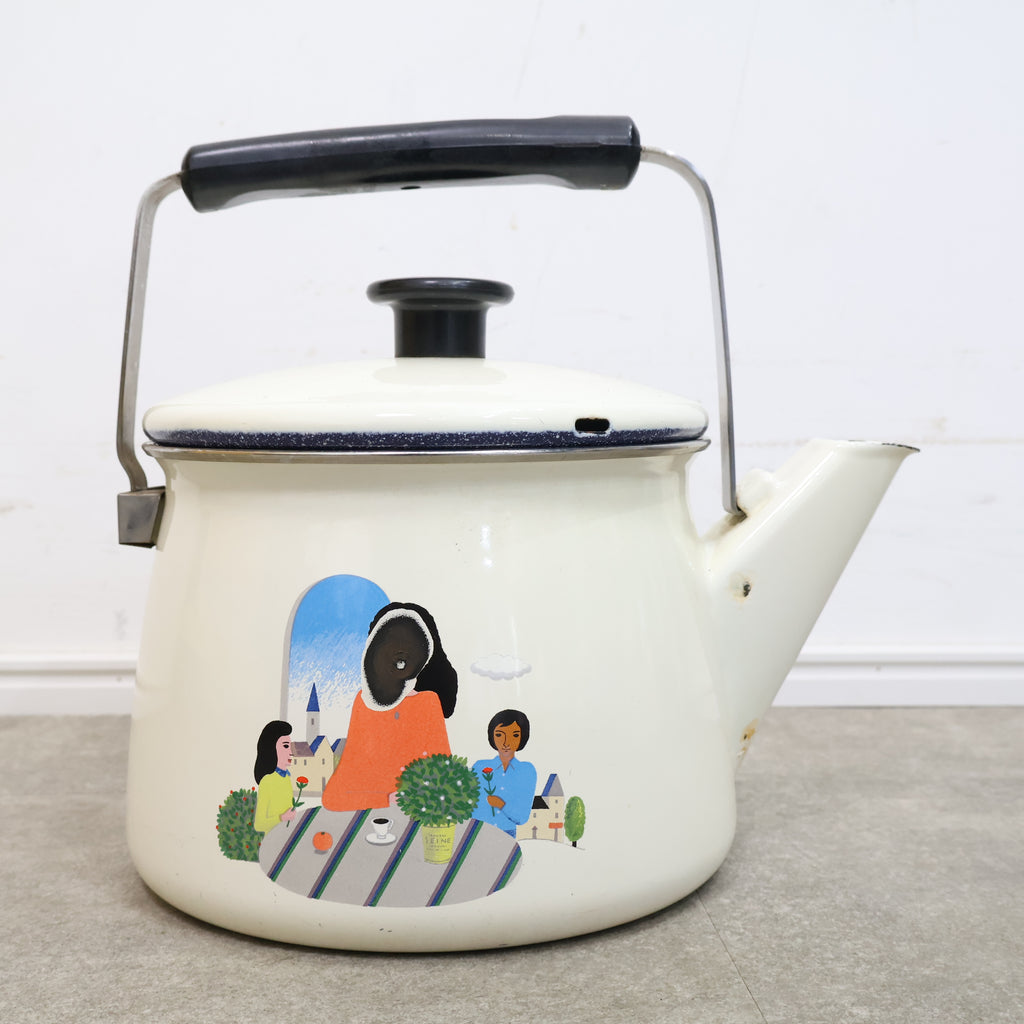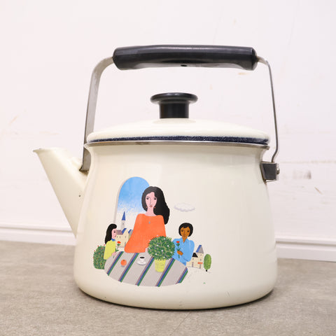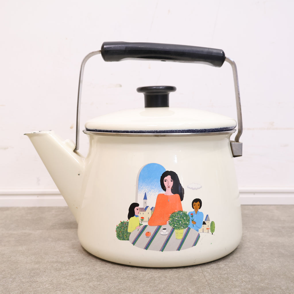レトロなイラストのホーロー製ケトル